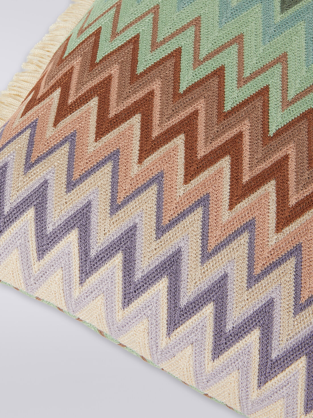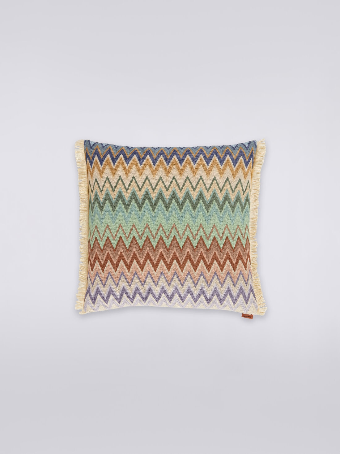 Animado por una divertida sucesión de flecos que embellecen sus ribetes, el cojín Margot de 40x40 cm con motivo de espigas aprovecha toda la maestría textil de Missoni para enriquecer cualquier ambiente doméstico con su carga de reconocibilidad icónica.