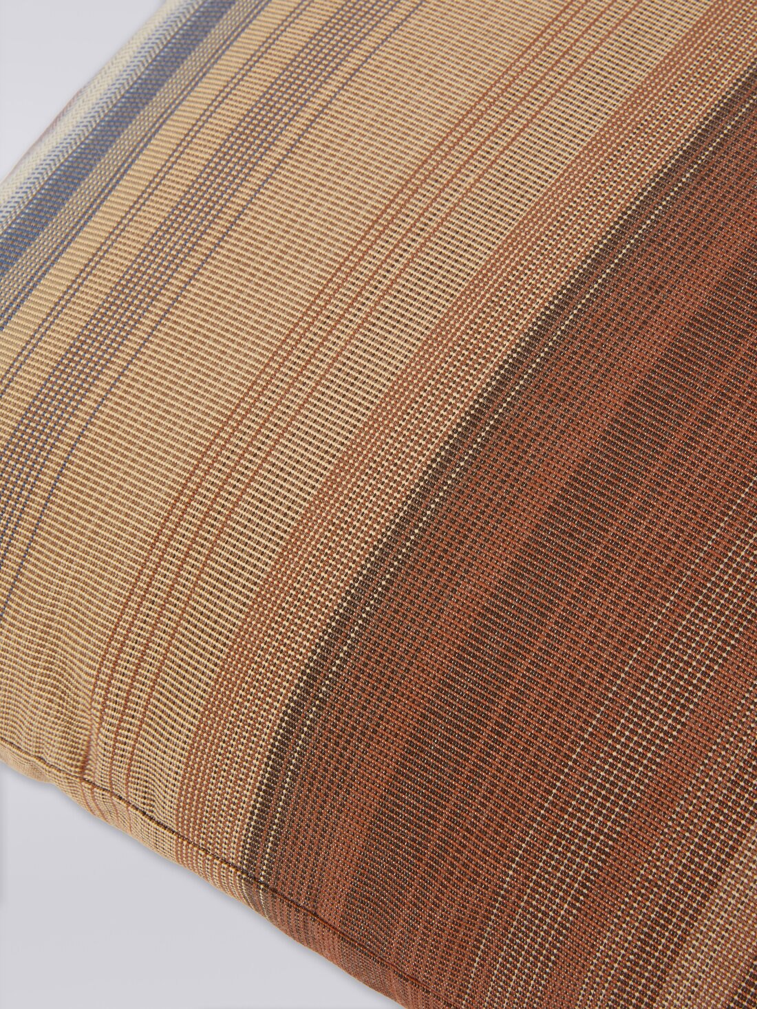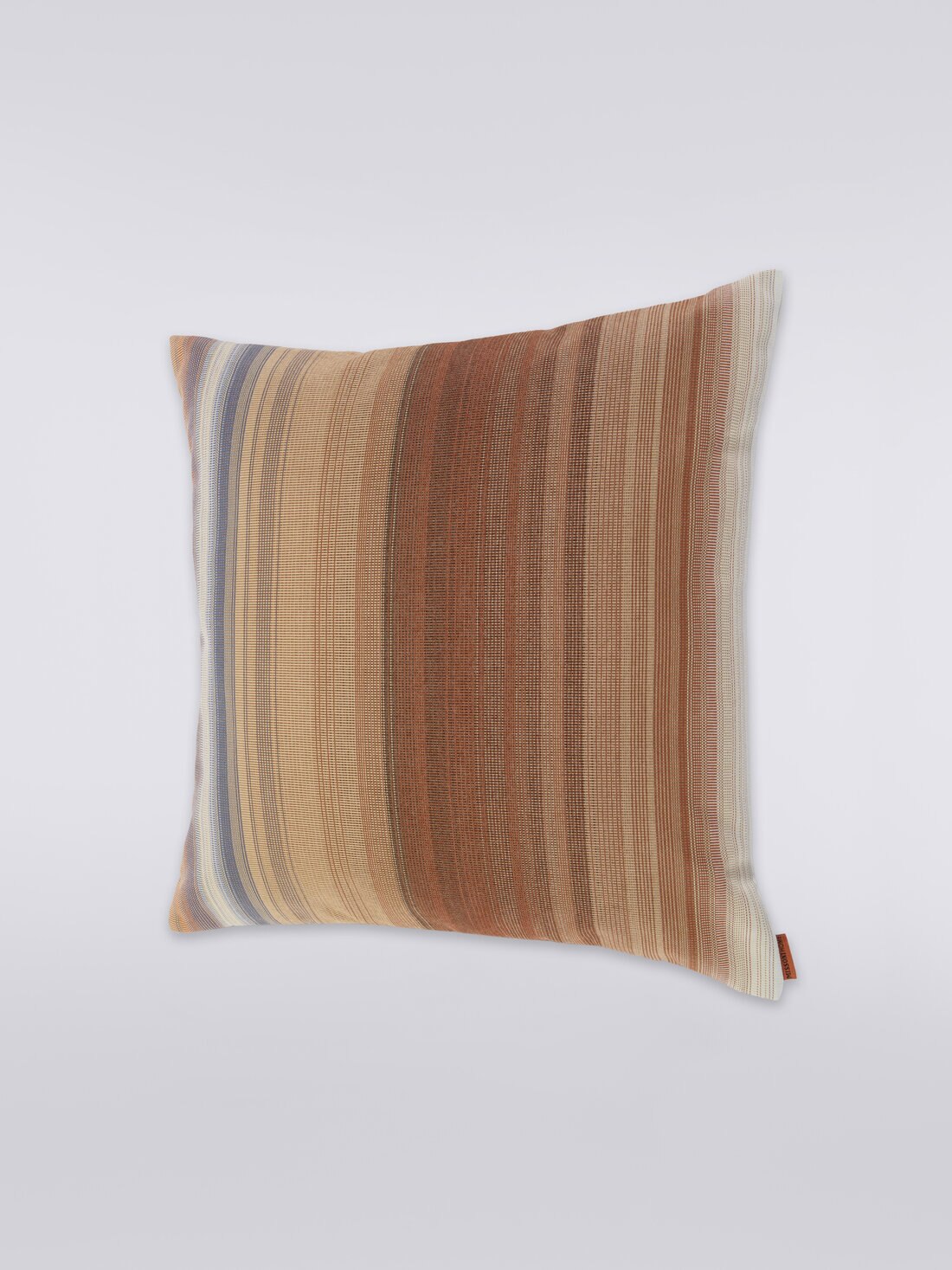 Rayas de diferentes intensidades animan la superficie del cojín Yumbel de 40x40 cm. Propuesto en un color degradado, este accesorio para el hogar se ha personalizado con la etiqueta del logotipo de Missoni.