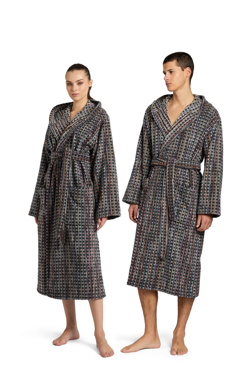 A festive combination of patterns with a vague optical flavour lend elegance and sophistication to the print presented here by MissoniHome for Benji, the terry line.