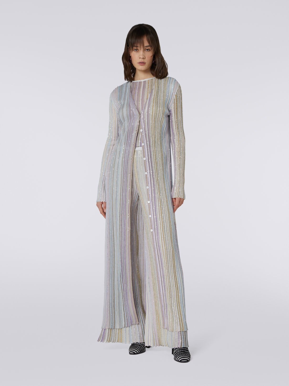 Cardigan en viscose à rayures verticales avec paillettes