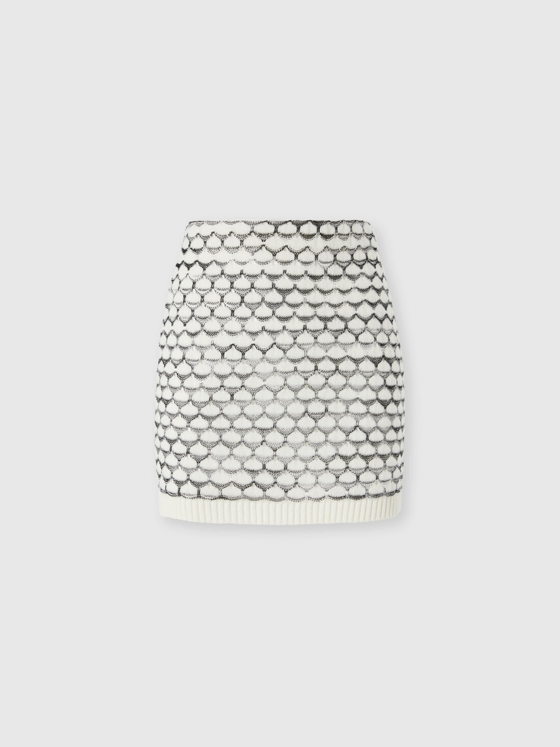 Mini-jupe pour femme en cachemire et viscose avec un raffiné point de panier et des finitions côtelées contrastées. Un modèle qui associe textures précieuses et détails distinctifs, expression de l’élégance sophistiquée de Missoni.