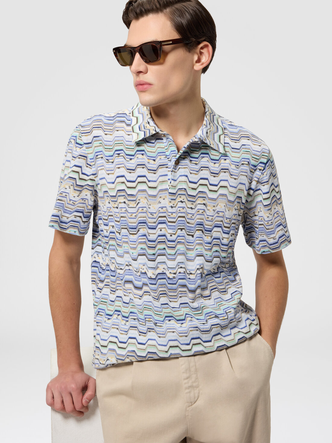 Polo en coton à maille Raschel motif grec