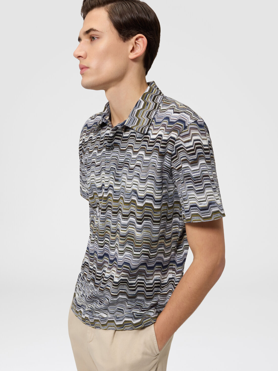 Polo en coton à maille Raschel motif grec