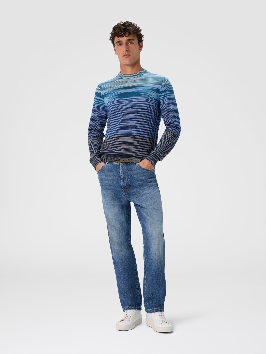 D’une élégance sobre et contemporaine, ce pull ras-du-cou pour homme en 100 % laine flammée all-over est une pièce qui marie confort et style avec brio. Sa texture flammée, qui s’étend sur toute la surface, crée un effet visuel unique, jouant avec la lumière et les contrastes pour un rendu dynamique et sophistiqué.