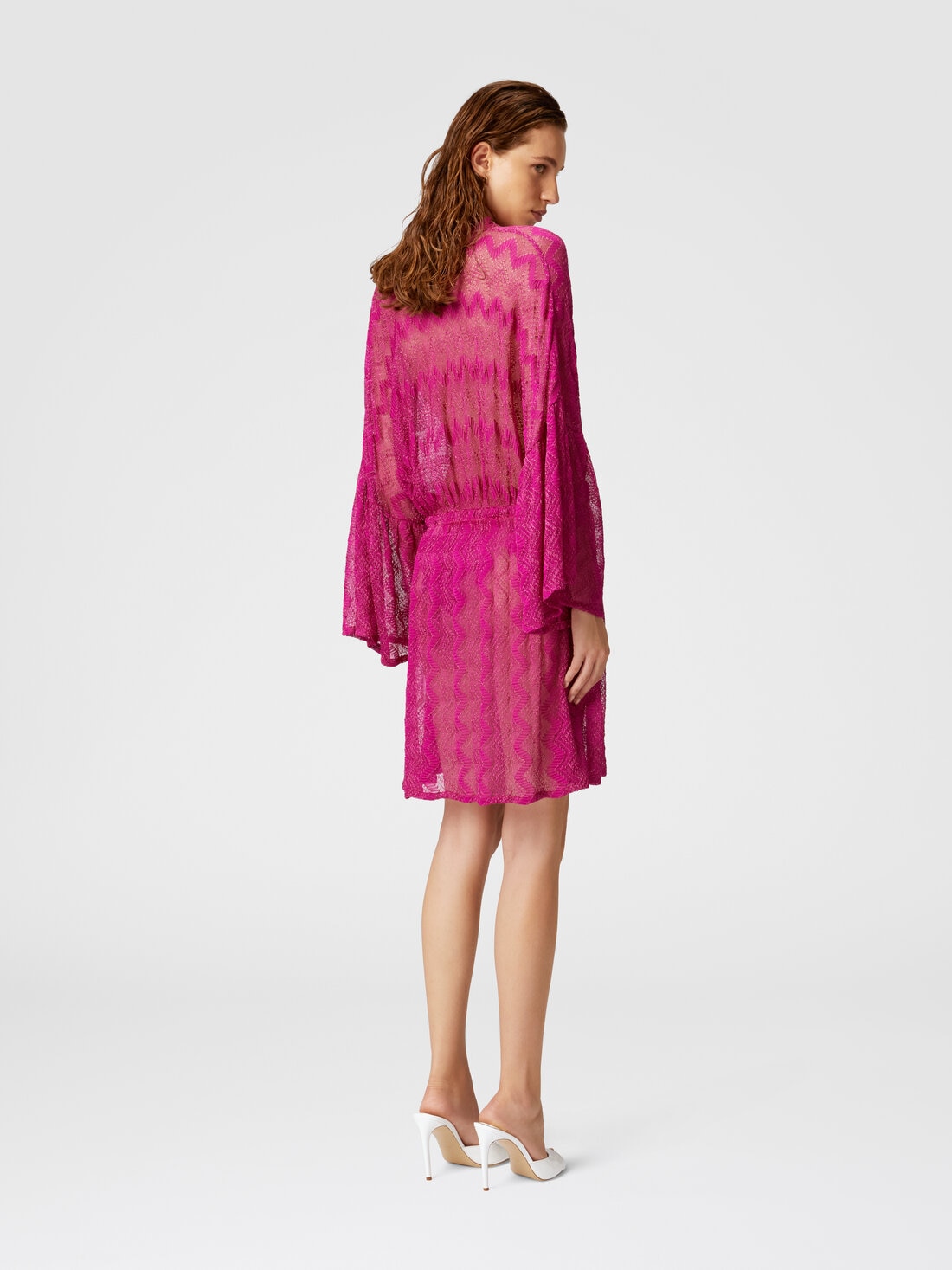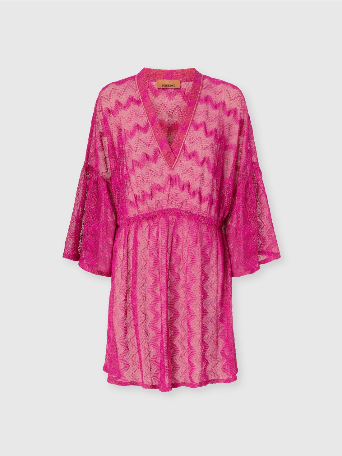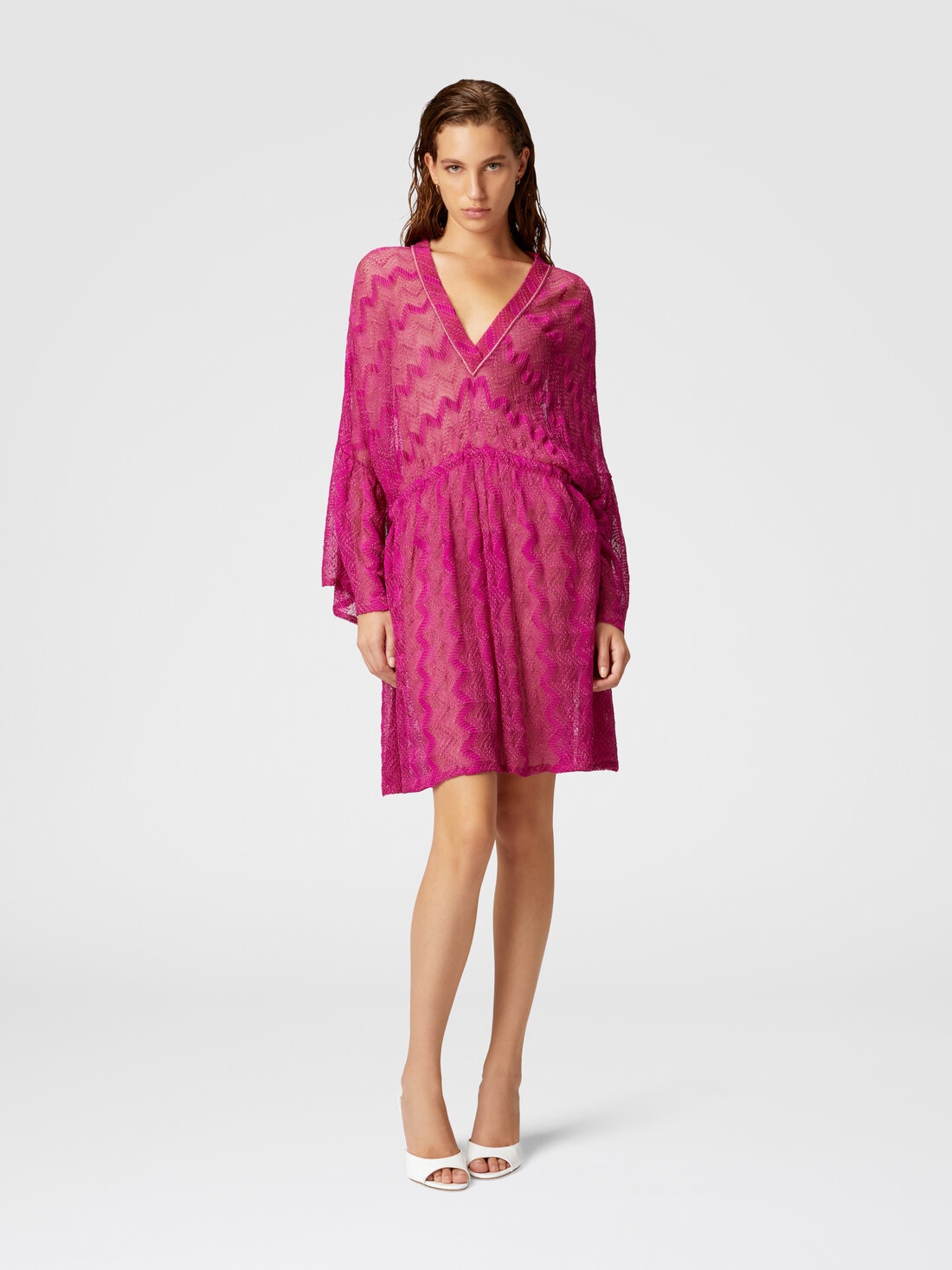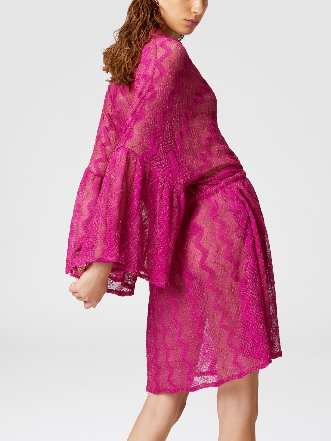 Robe couvrante en viscose lamé zigzag à manches larges