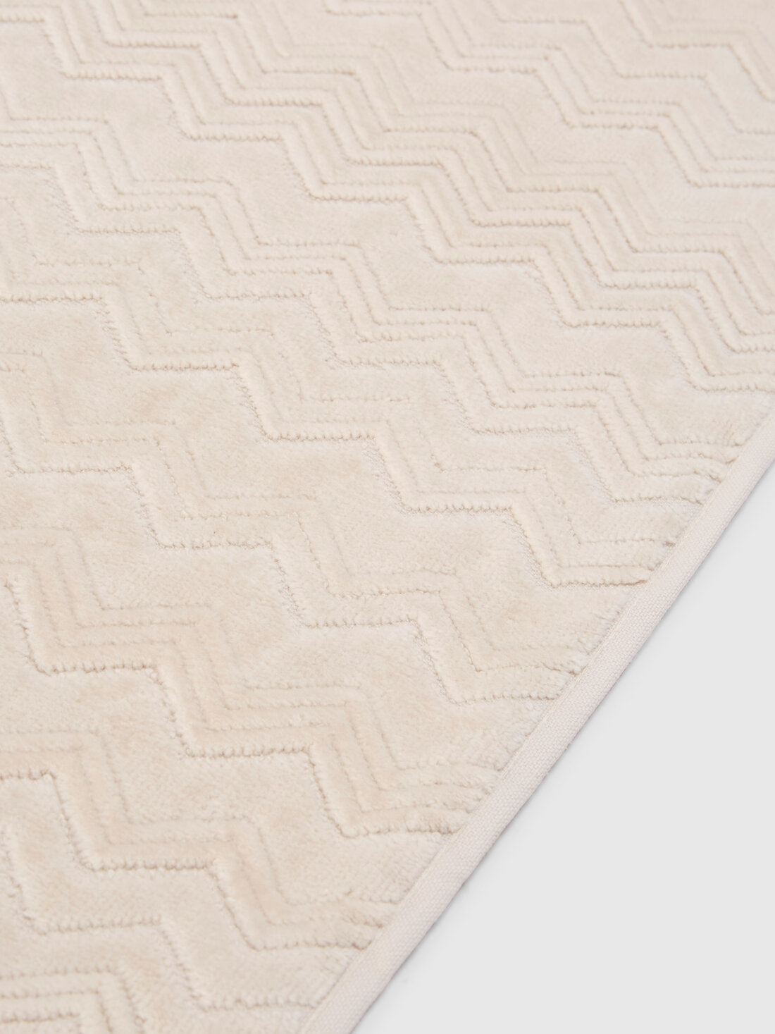 MissoniHome se consacre à la perfection dans chaque détail, en fournissant des accessoires assortis pour embellir chaque pièce de la maison. Voici le tapis de bain Chalk 90x60 cm en éponge de coton, qui présente un motif à zigzag raffiné dans une élégante version ton sur ton.