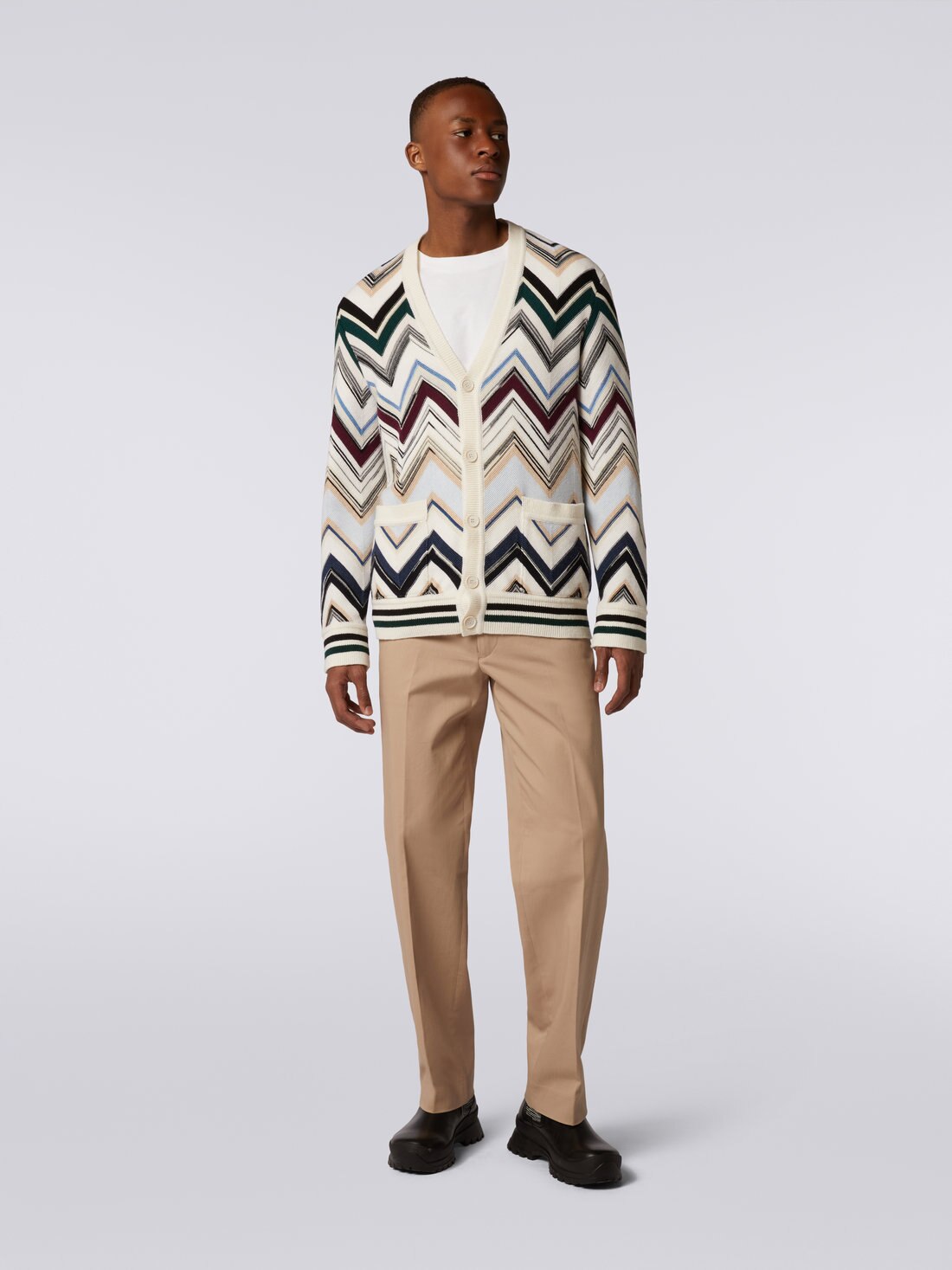 Cardigan en maille de laine et coton à zig zag
