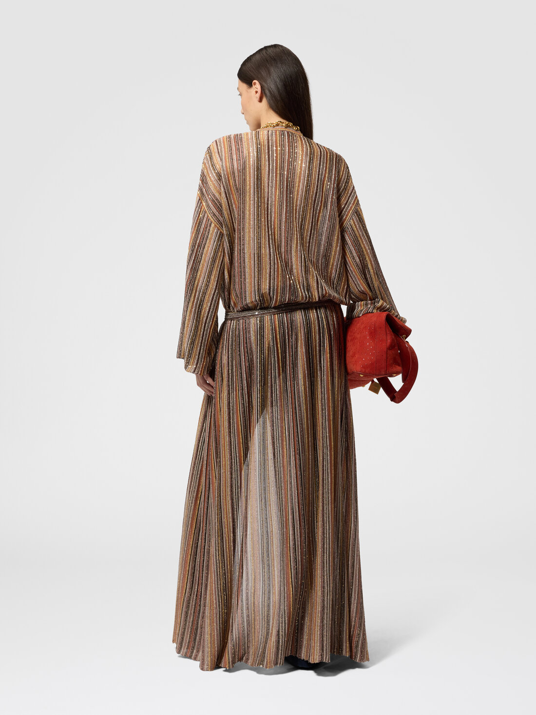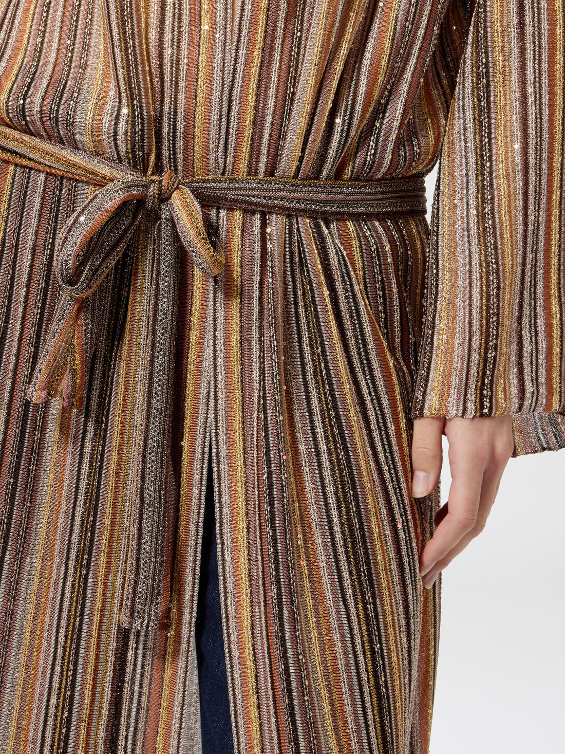 Long cardigan côtelé en viscose lamé avec ceinture