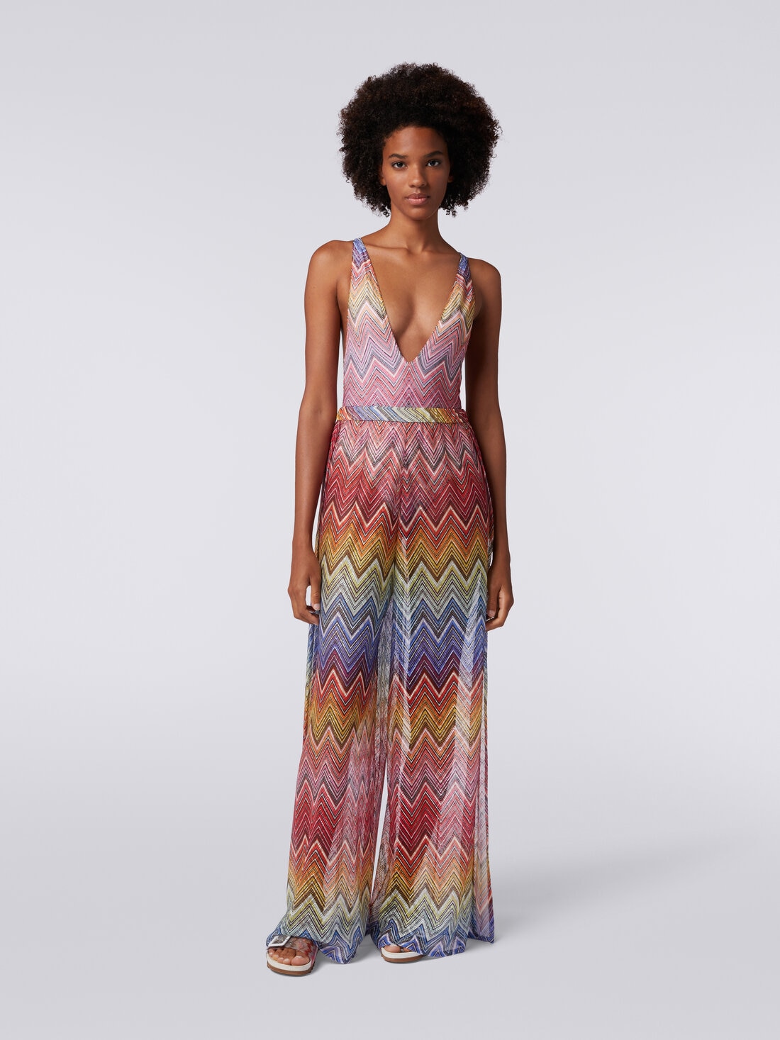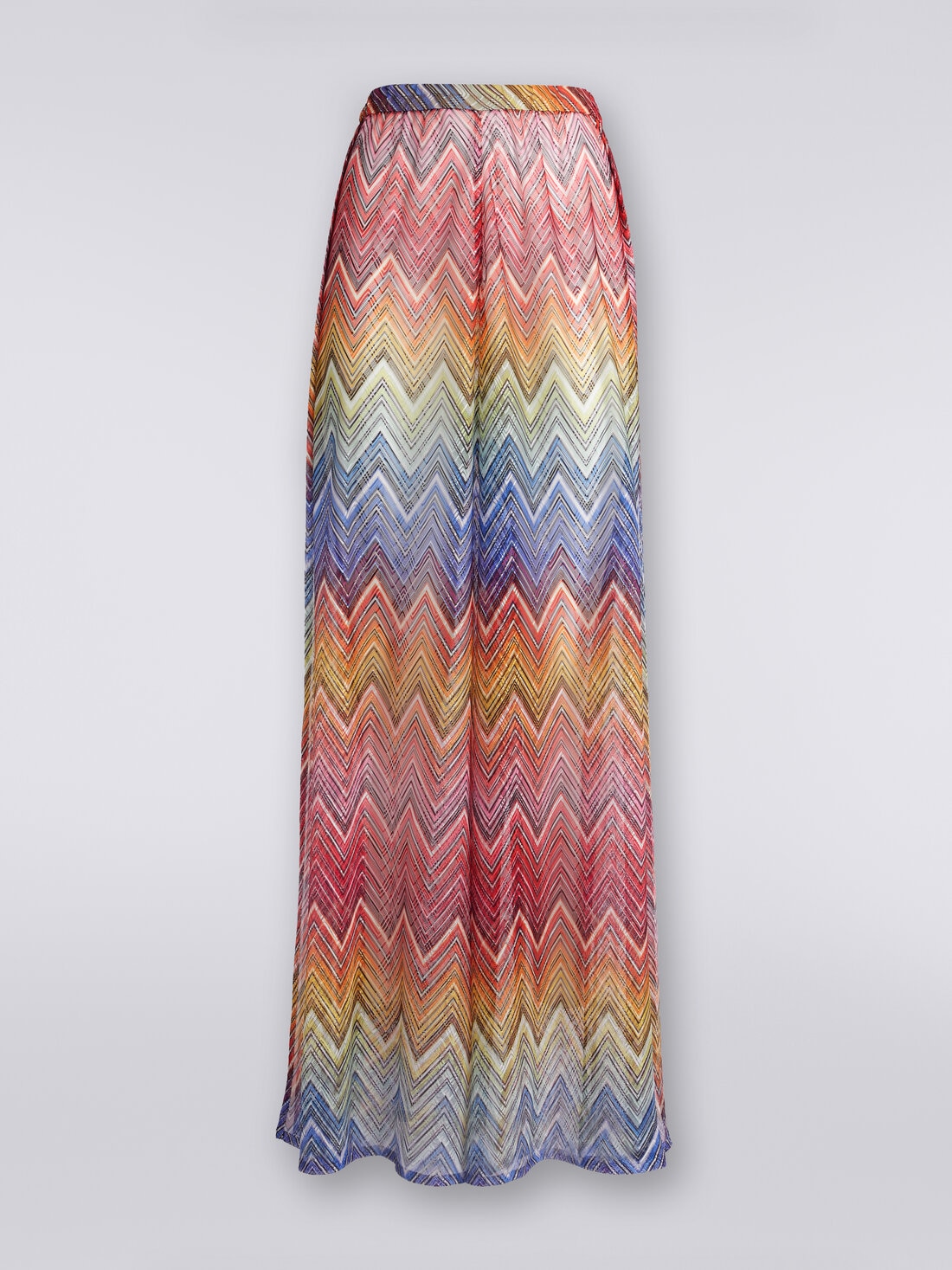 Des fentes latérales profondes et une taille élastique qui garantit confort et polyvalence : c'est ainsi que la version Missoni du pantalon de plage pour femme devient sensuelle et sophistiquée. Rendu iconique par l'imprimé à zigzag, ce modèle est parfait pour être porté de l'heure de l'apéritif aux soirées disco.