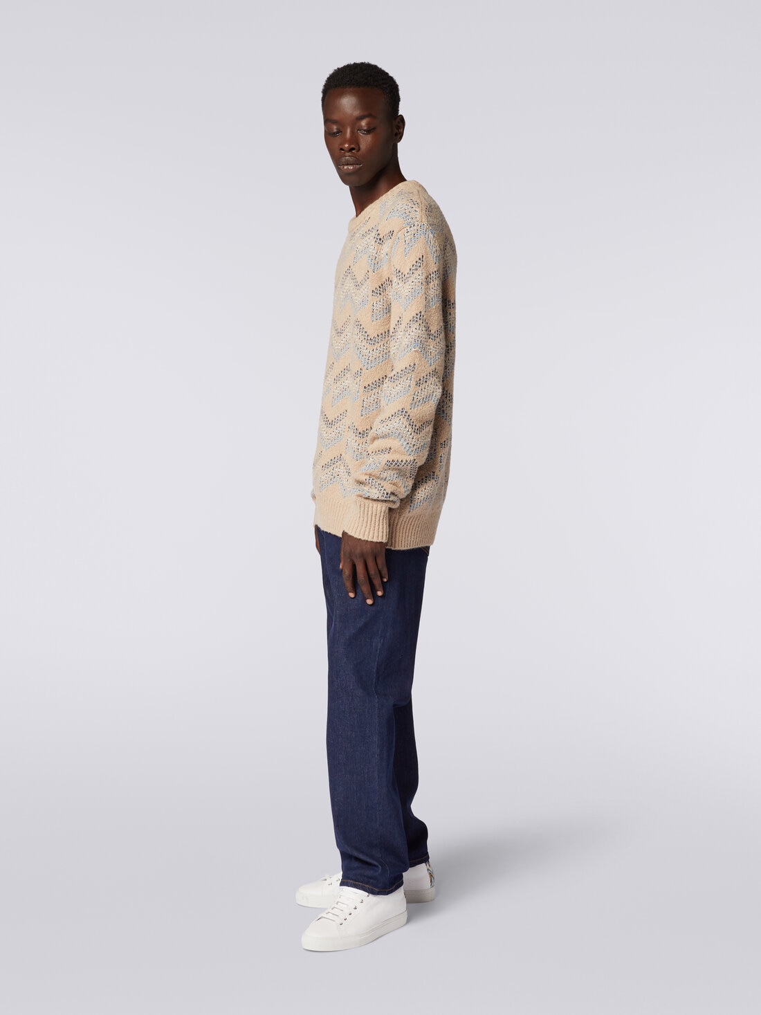 Pull à col ras du cou en coton mélangé à motif zig zag
