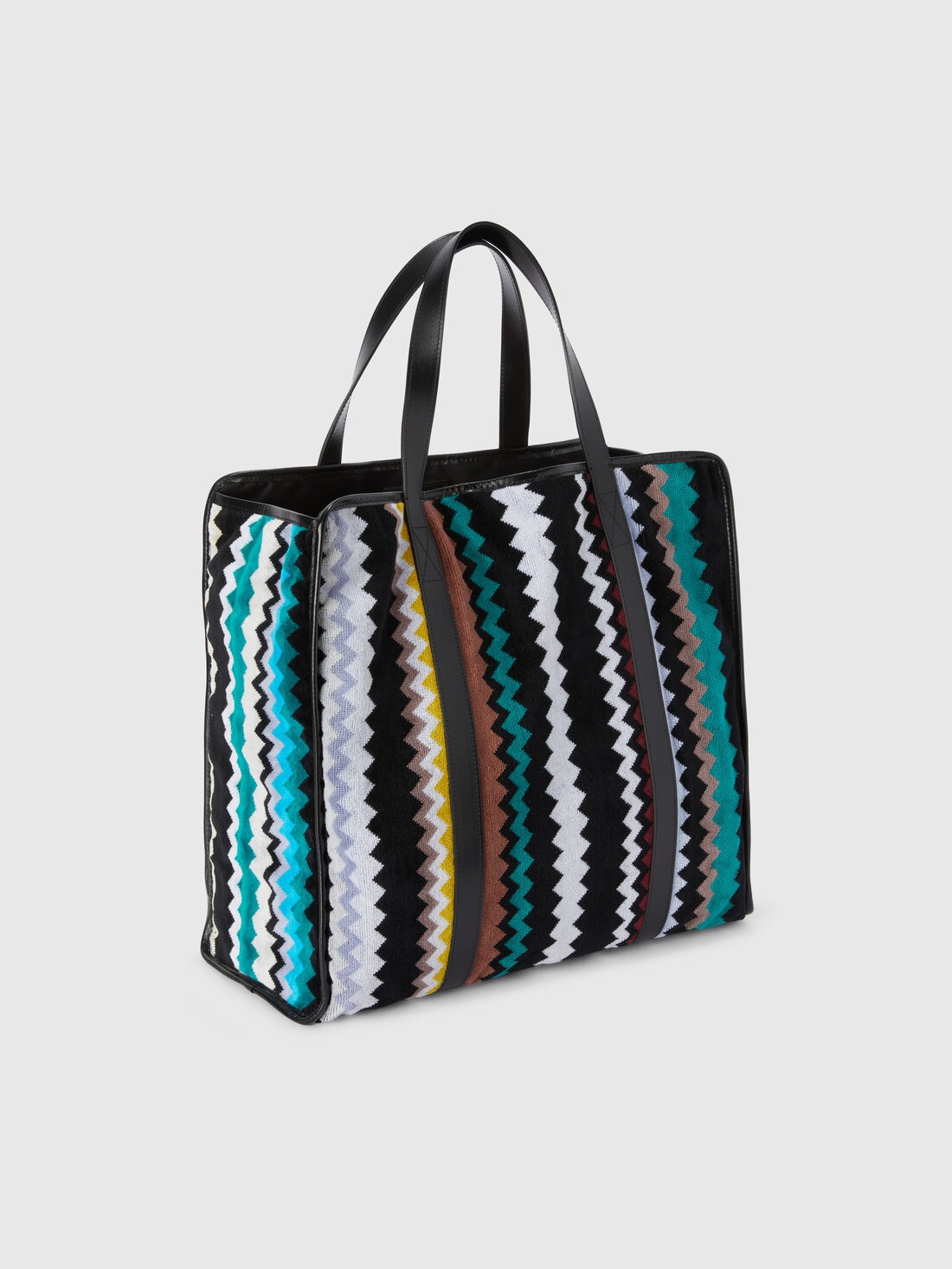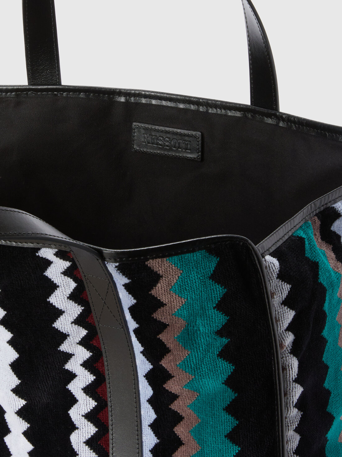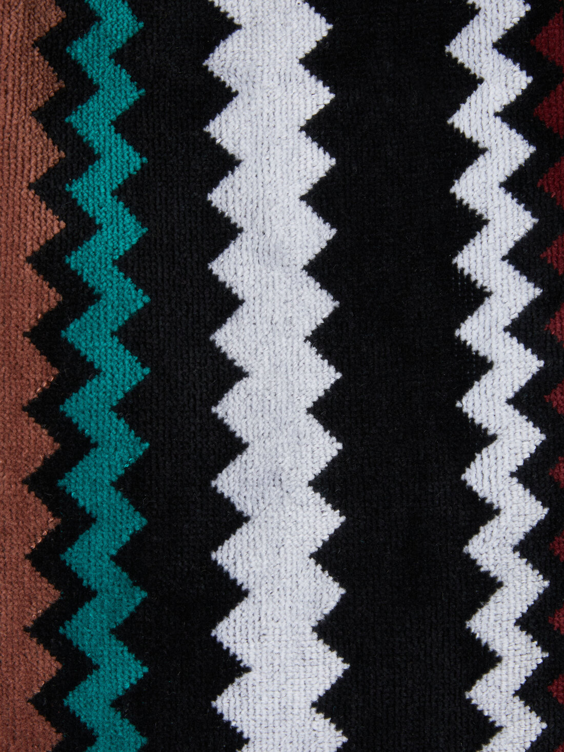 Le sac Curt Home interprète parfaitement l’ADN de MissoniHome. Le tissu éponge de coton pur velours, traversé par le motif en zigzag et caractérisé par l’écriture du logo, recouvre cet accessoire de maison, pratique pour ranger les objets les plus variés de manière ordonnée, de style intemporel.