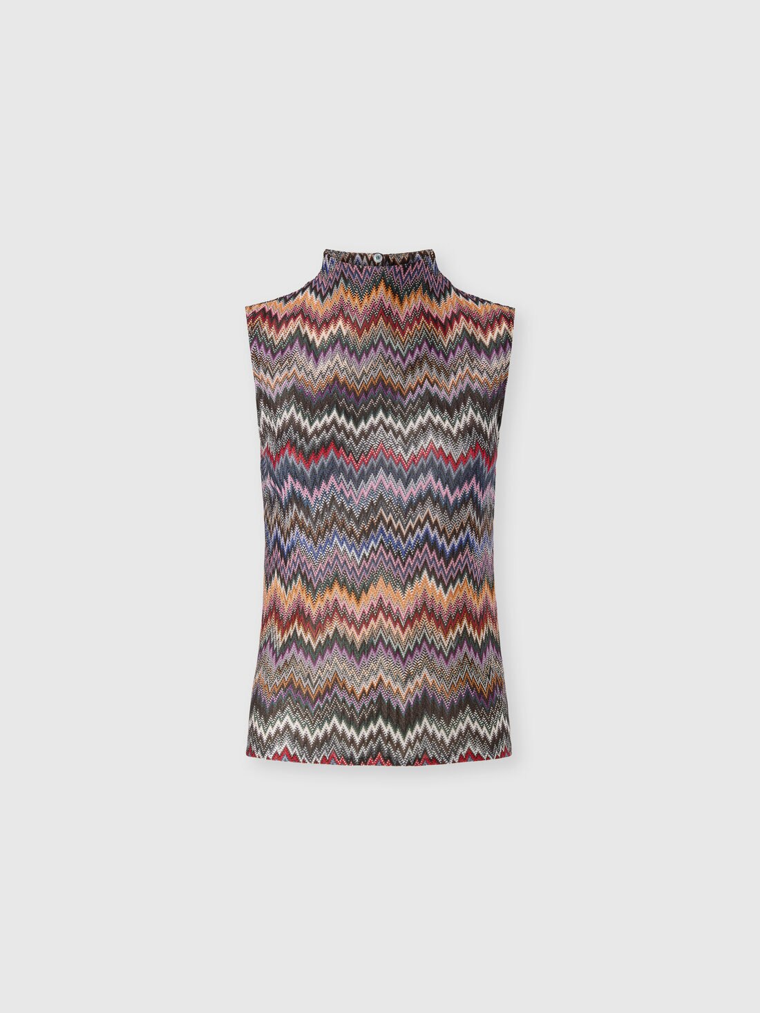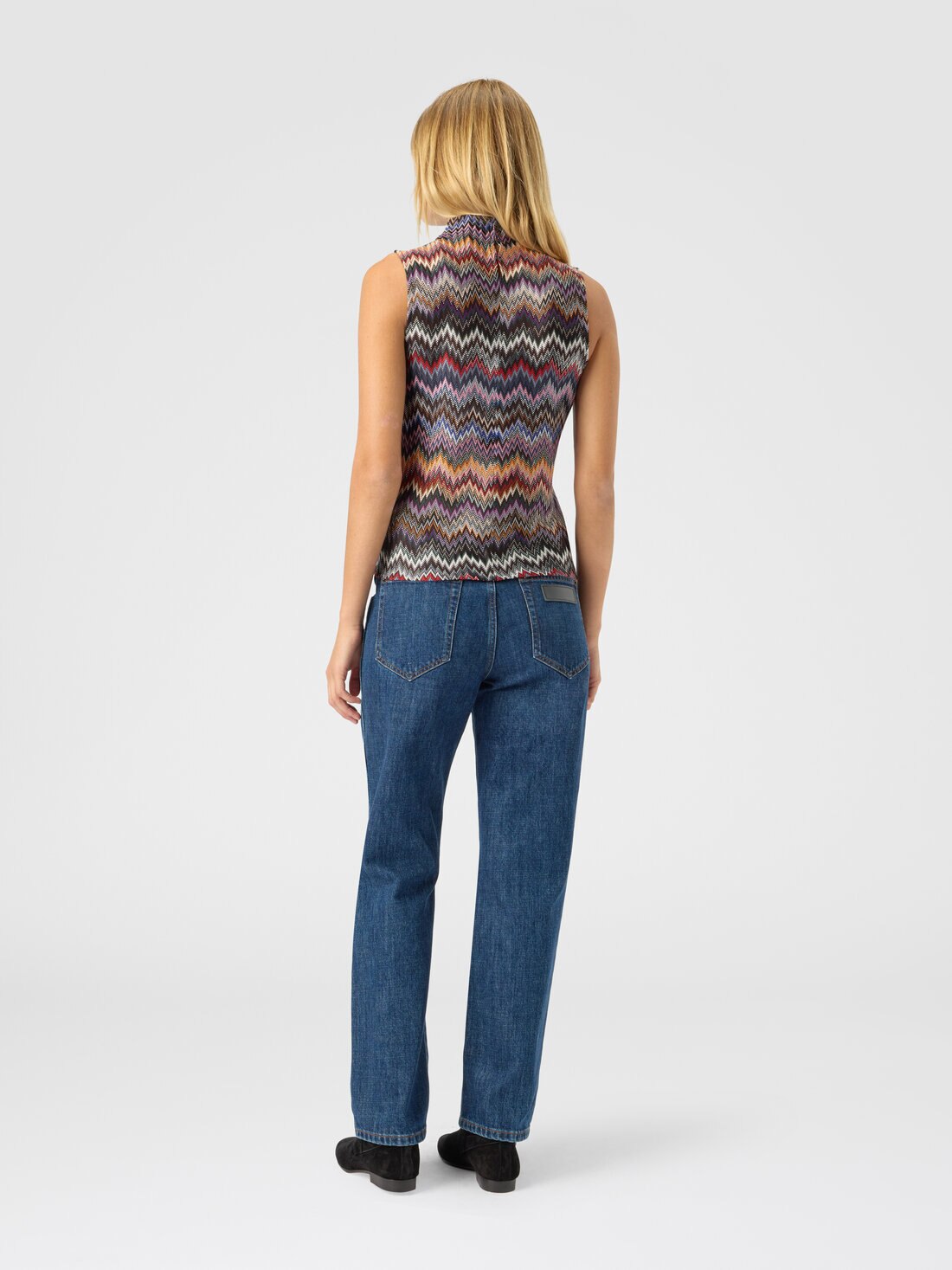 Audacieux et raffiné, ce top sans manches à col montant pour femme est confectionné en 100 % viscose et agrémenté d’une finition raschel qui crée un motif « snake » inspiré du célèbre zigzag Missoni. Une pièce élégante et contemporaine, parfaite pour apporter une touche originale à votre garde-robe grâce à un jeu unique de textures et de formes.