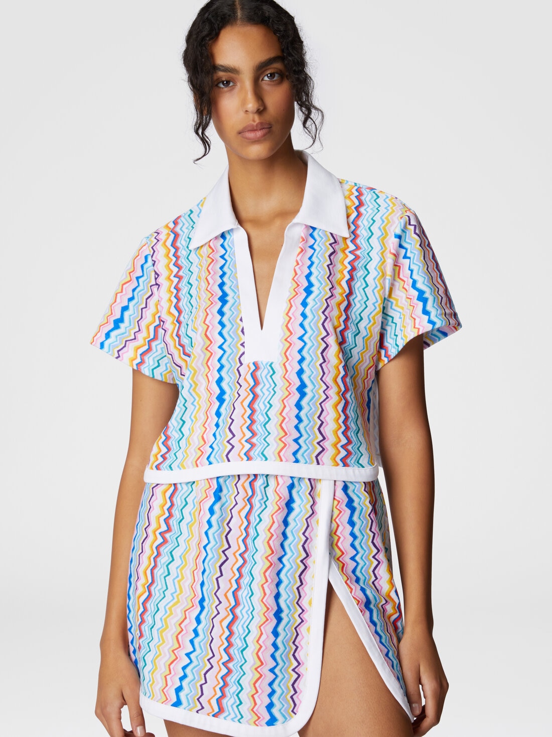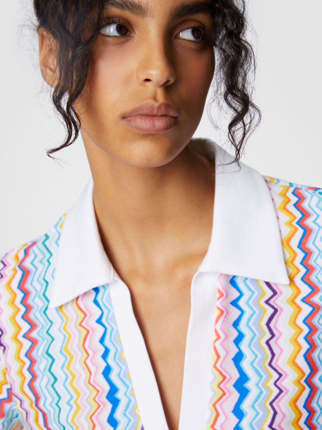 Réalisé en jersey éponge imprimé, ce top allie un design décontracté à des détails iconiques. Le col en V et le col ajoutent une touche classique, tandis que la coupe fluide garantit le confort.