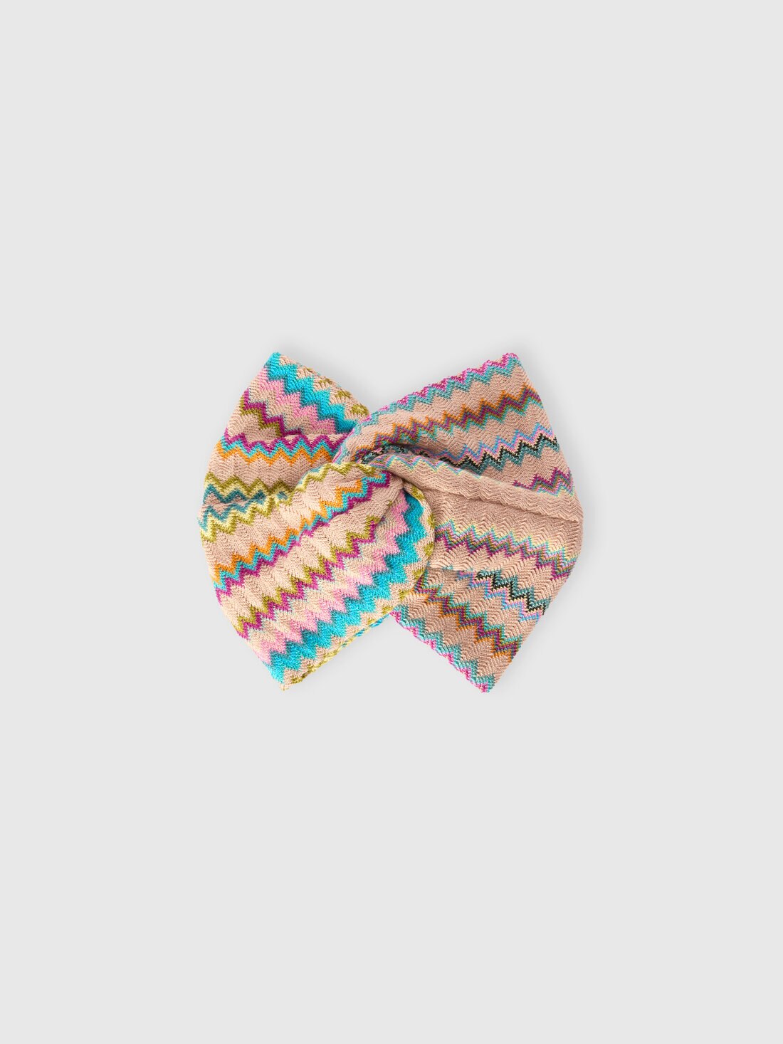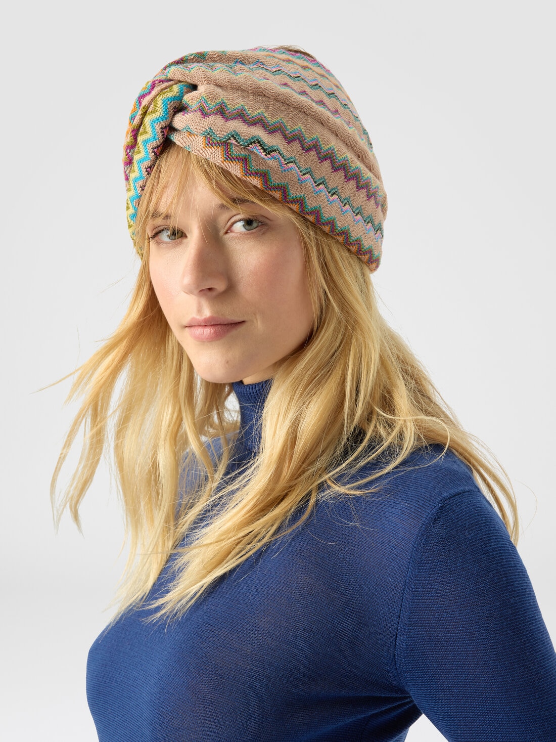 Un torsion centrale qui apporte du mouvement et un motif zigzag intégral qui ajoute de la personnalité : on ne peut rien demander de plus à ce bandeau pour femme en laine mélangée signé Missoni !
