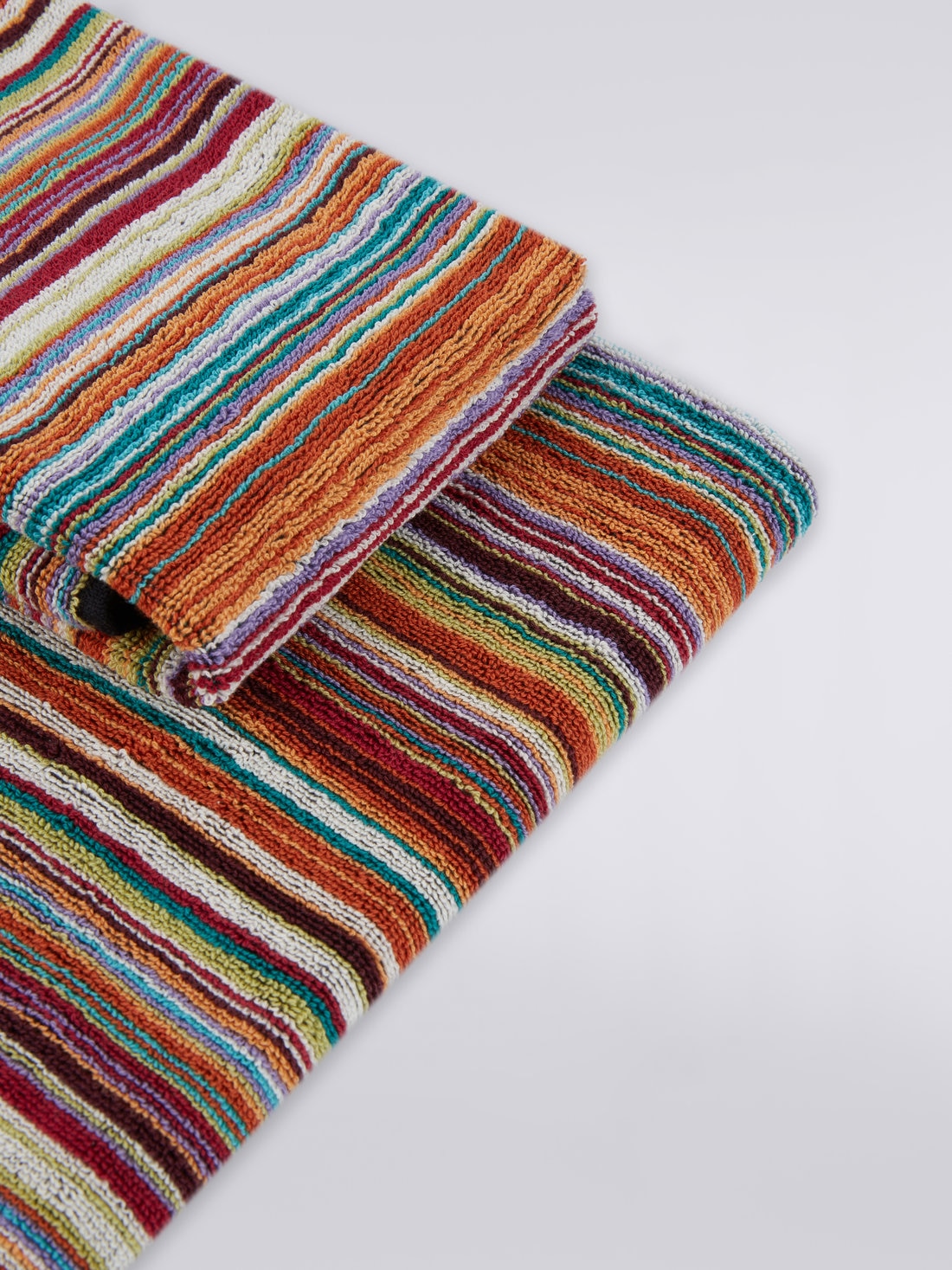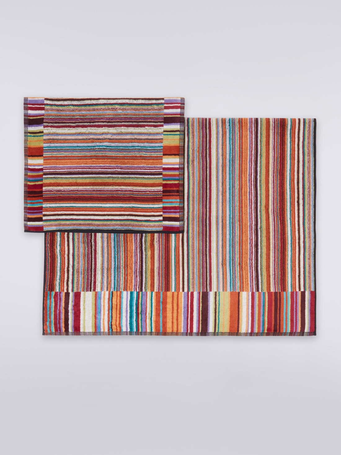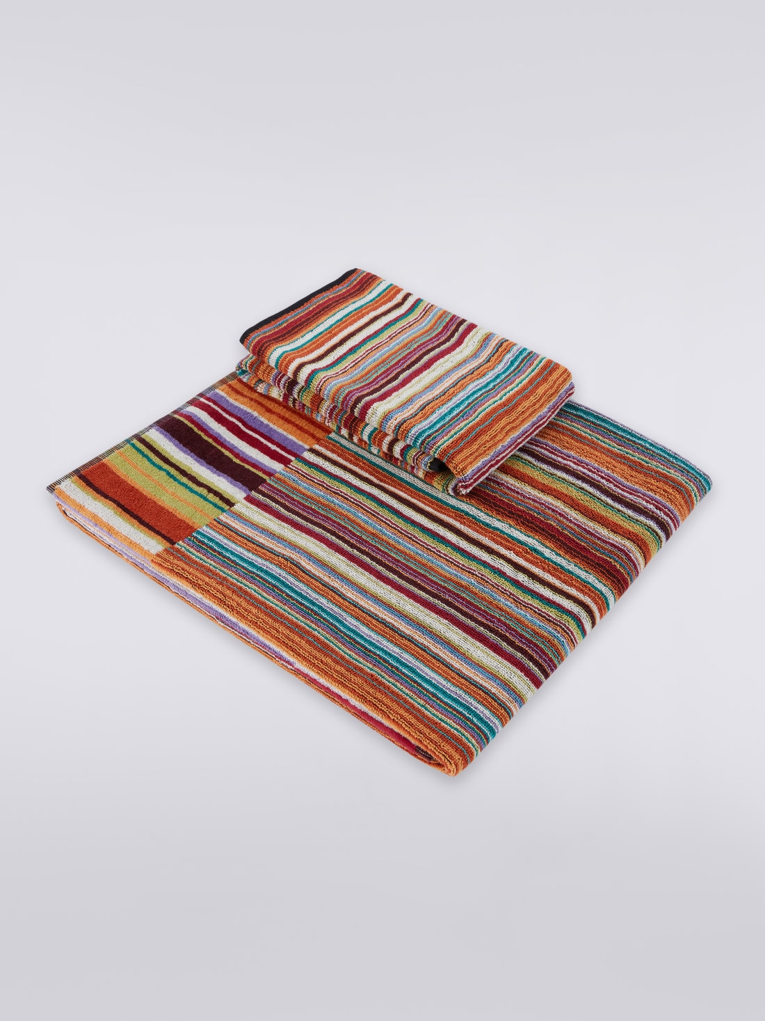Le rythme hypnotique, presque musical, des rayures verticales, souligné par les différentes épaisseurs des bordures, caractérise le set de serviettes 2 pièces Jazz. MissoniHome mélange des formes géométriques et des variations de couleurs raffinées pour donner à la salle de bains un style incomparable.