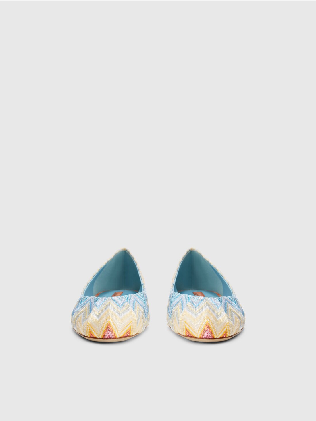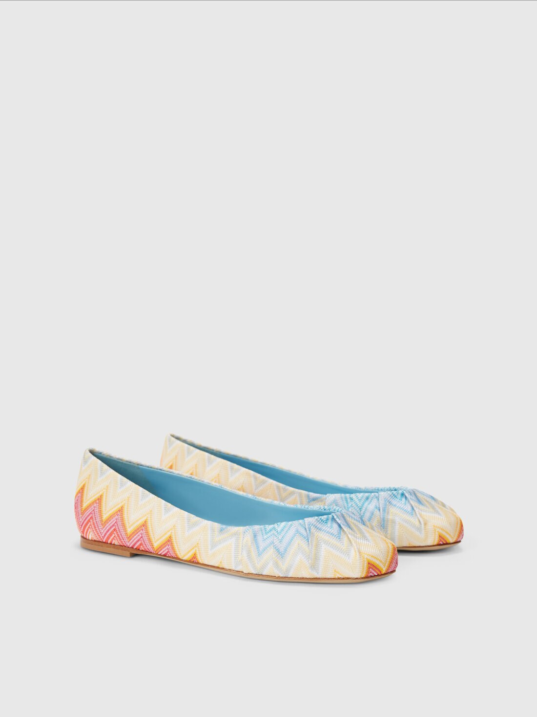 Avec une tige en tissu irisé, voici les ballerines plates proposées par Missoni, prêtes à capter l'attention par leur charme. Le motif en zigzag ajoute une touche de dynamisme au design, pour une chaussure basse qui assure du style à revendre, sans sacrifier le confort.