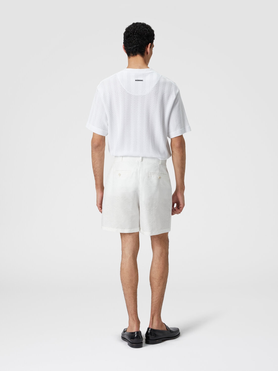 Il suffit de regarder ce bermuda pour hommes pour comprendre immédiatement son caractère unique ! Raffinés et luxueux dans son mélange de coton et de lin à finition jacquard, il est prêt à embellir n’importe quel look grâce au motif à zigzag qui le parcourt entièrement.