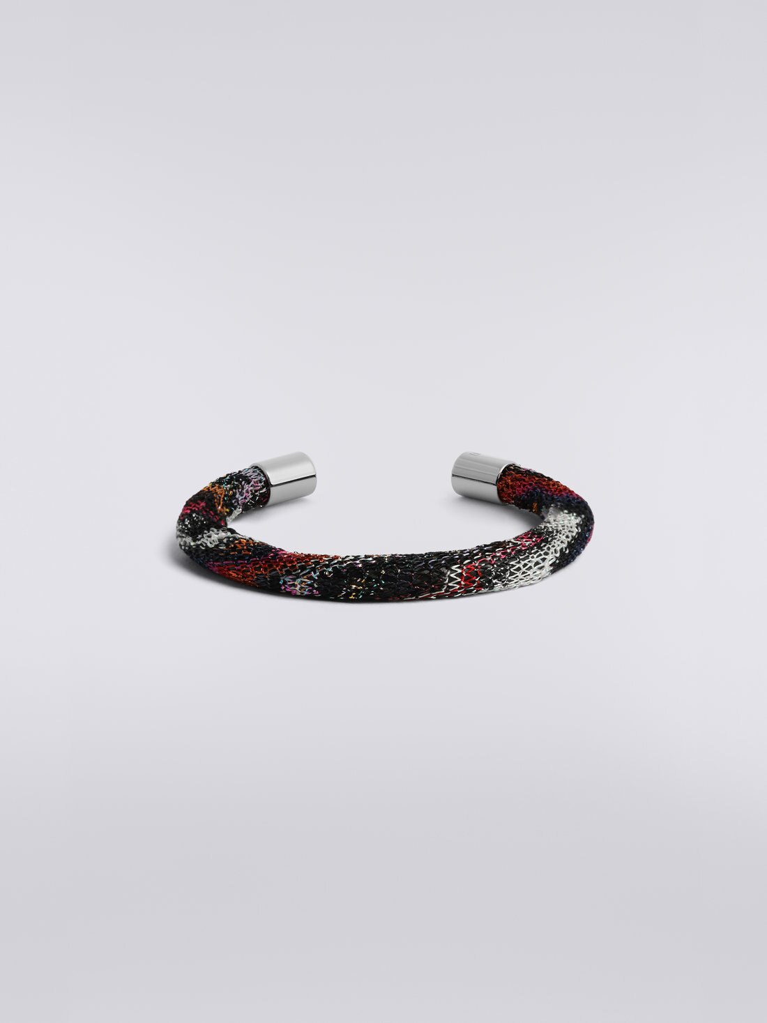 Le bracelet rigide de Missoni, créé avec du tissu enrichi de fils de lurex, incarne l’élégance et l’esprit distinctif de la marque. Sa forme en demi-cercle réglable permet un ajustement confortable et personnalisé autour du poignet. L’utilisation habile du lurex ajoute une touche d’éclat et de glamour, faisant de cet accessoire une pièce idéale pour compléter n’importe quel look avec style.