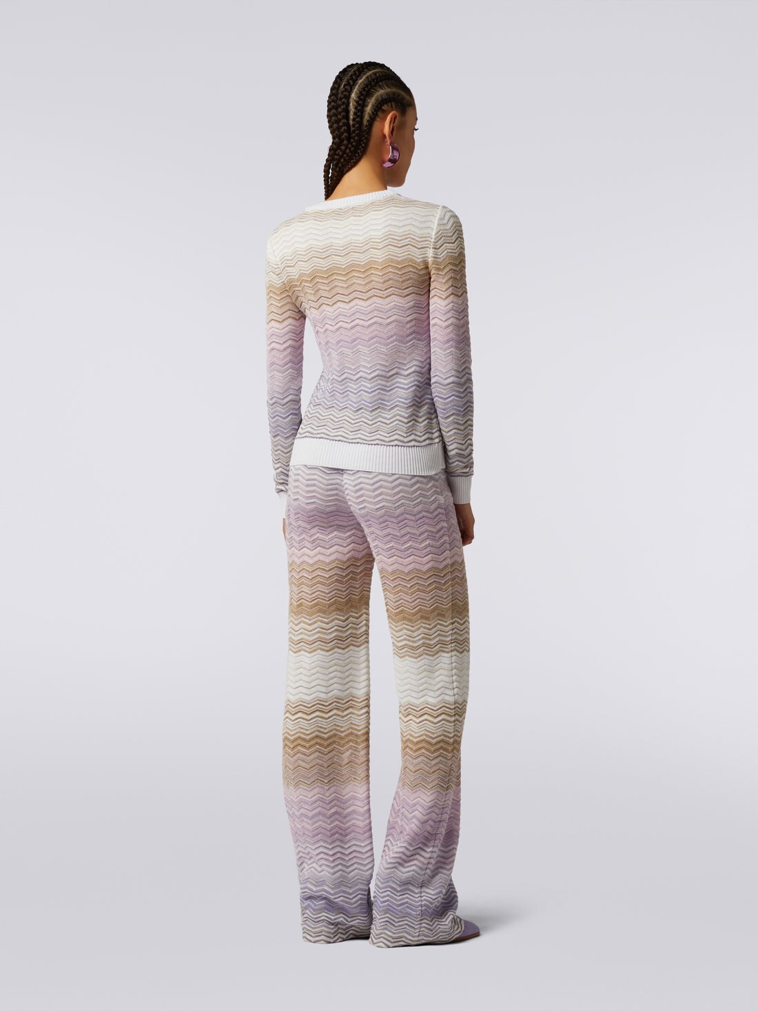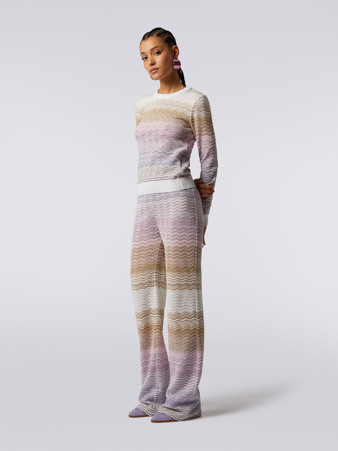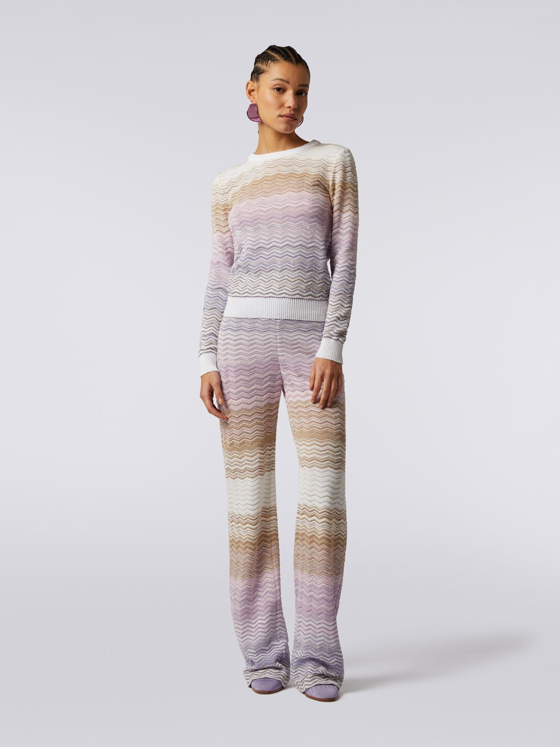 Pull à col rond en coton et viscose à chevrons