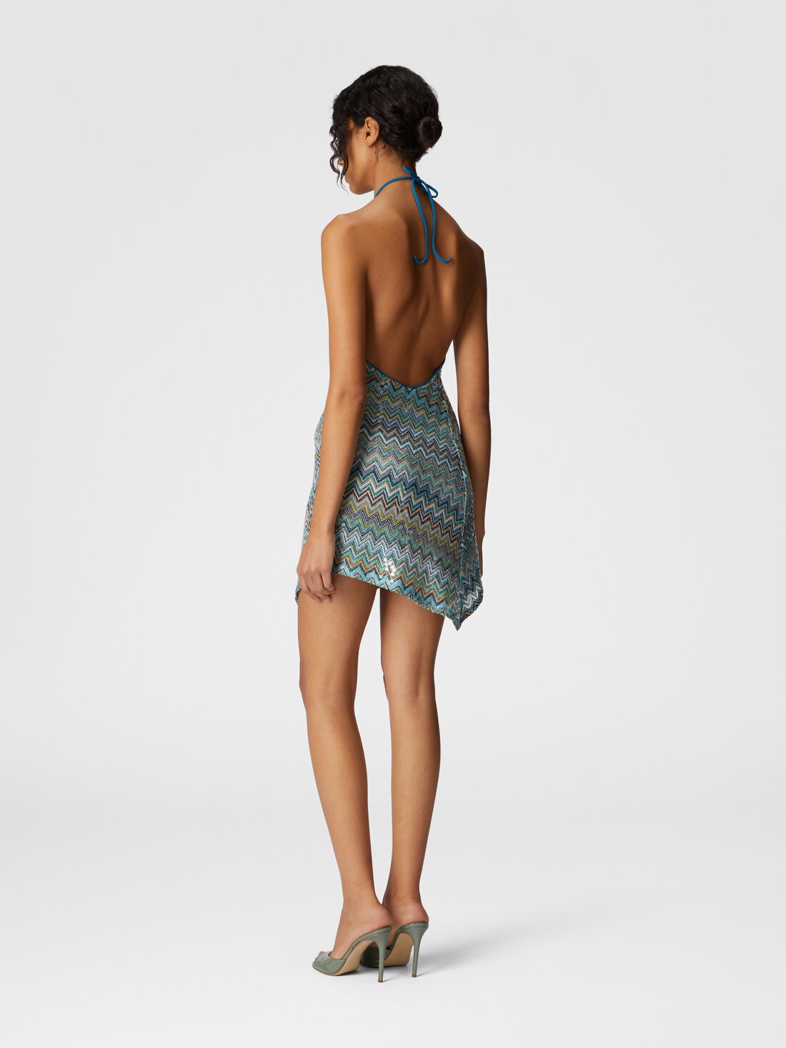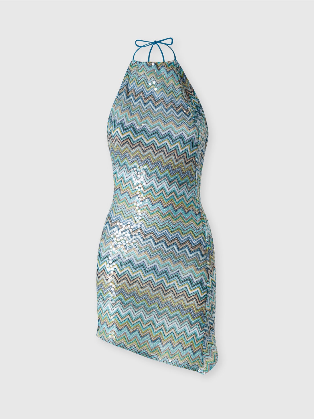 Robe courte asymétrique couvrante en viscose lamé zigzag à sequins