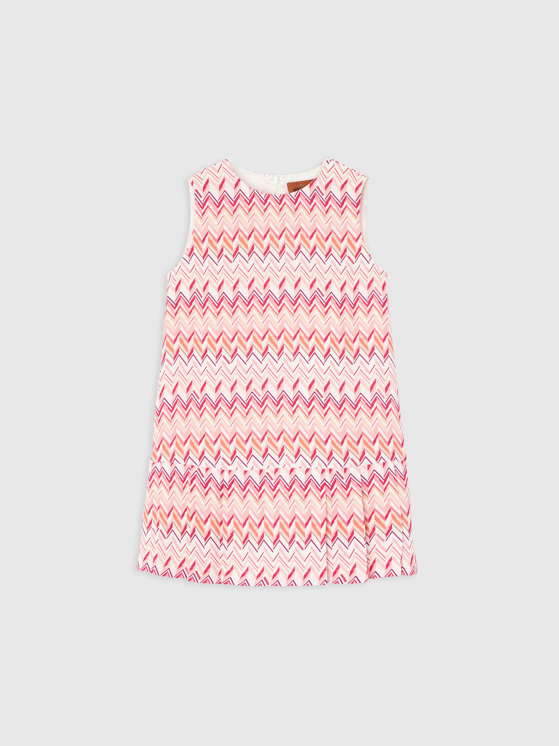 Une touche iconique déclinée avec légèreté : cette robe courte sans manches pour fille se distingue par un volant appliqué, une impression zig zag et un micro logo imprimé, signe identitaire discret de la maison.