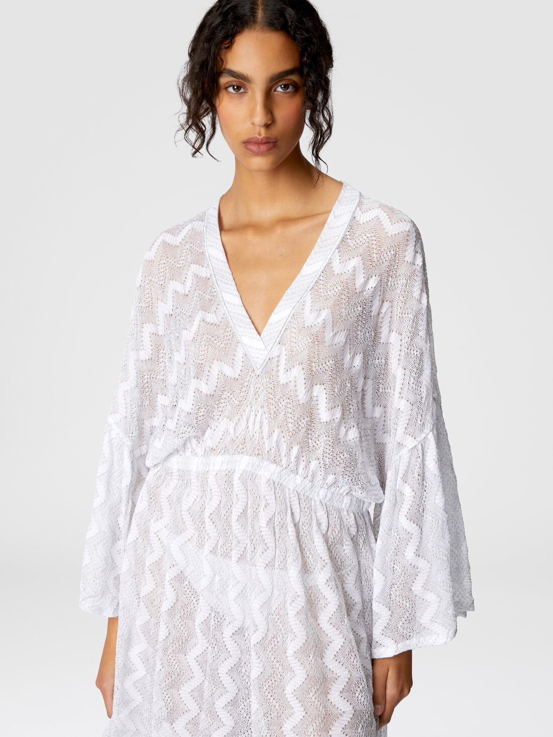 Robe couvrante en viscose lamé zigzag à manches larges