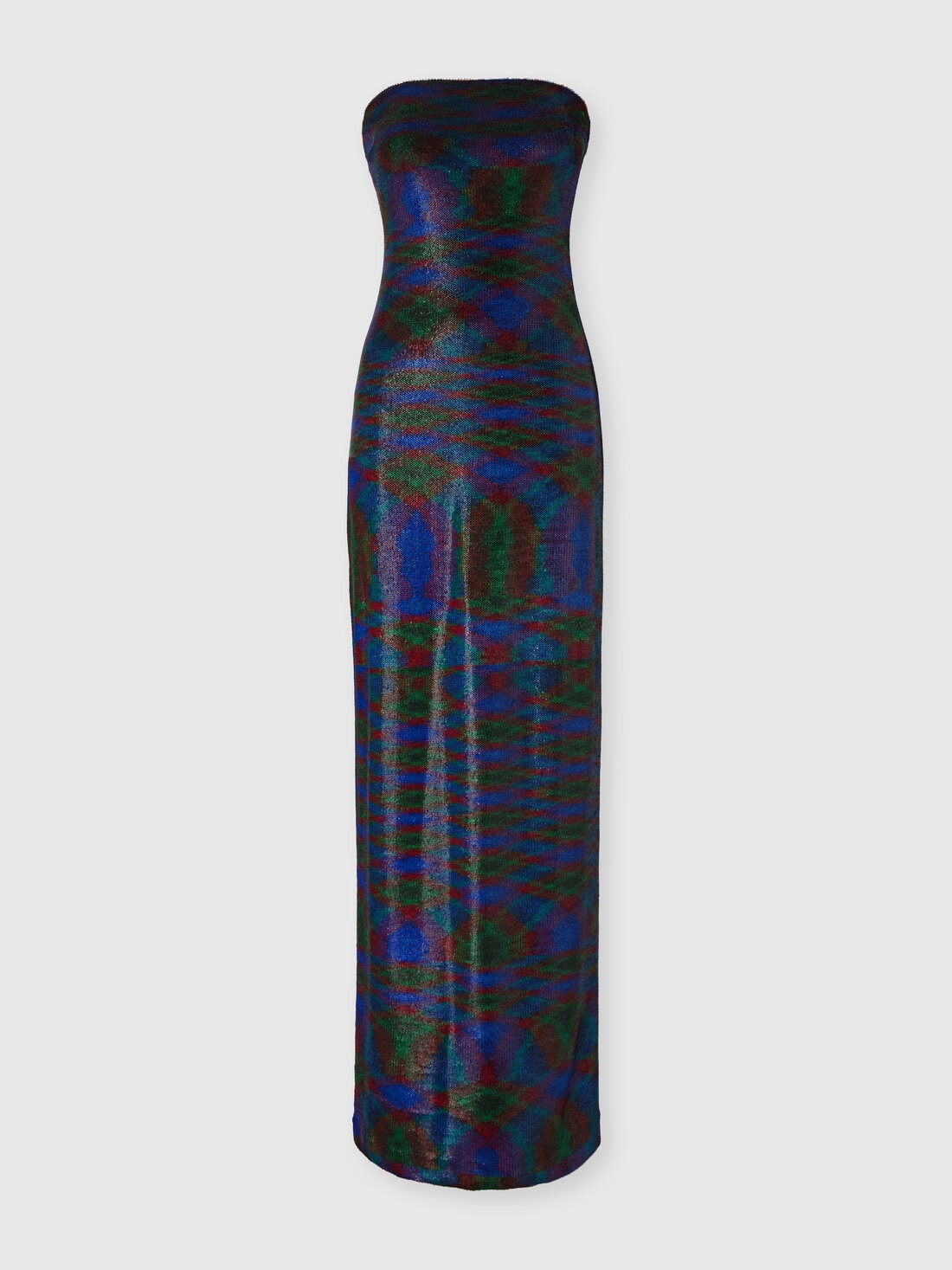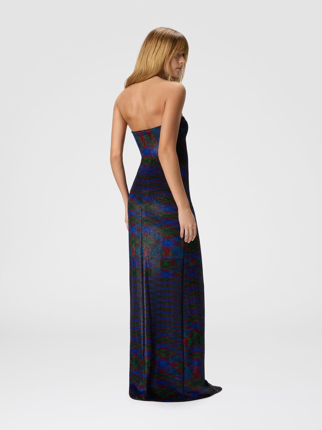 Une audace élégante prend forme dans cette robe longue sans bretelles pour femme, parfait équilibre entre texture recherchée et design contemporain. Réalisée en maille peluche, elle enveloppe la silhouette de douceur, tandis que le motif flammé imprimé crée un effet visuel matière et dynamique. Le tissu en mélange viscose et laine valorise la structure du vêtement, qui se distingue par un style affirmé et moderne, conçu pour celles qui veulent marquer avec raffinement et personnalité.
