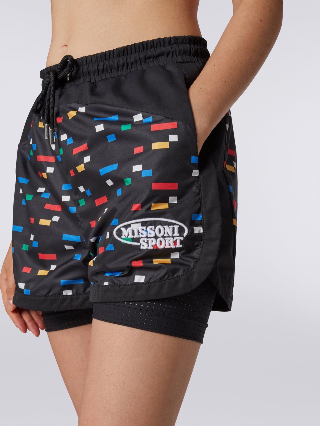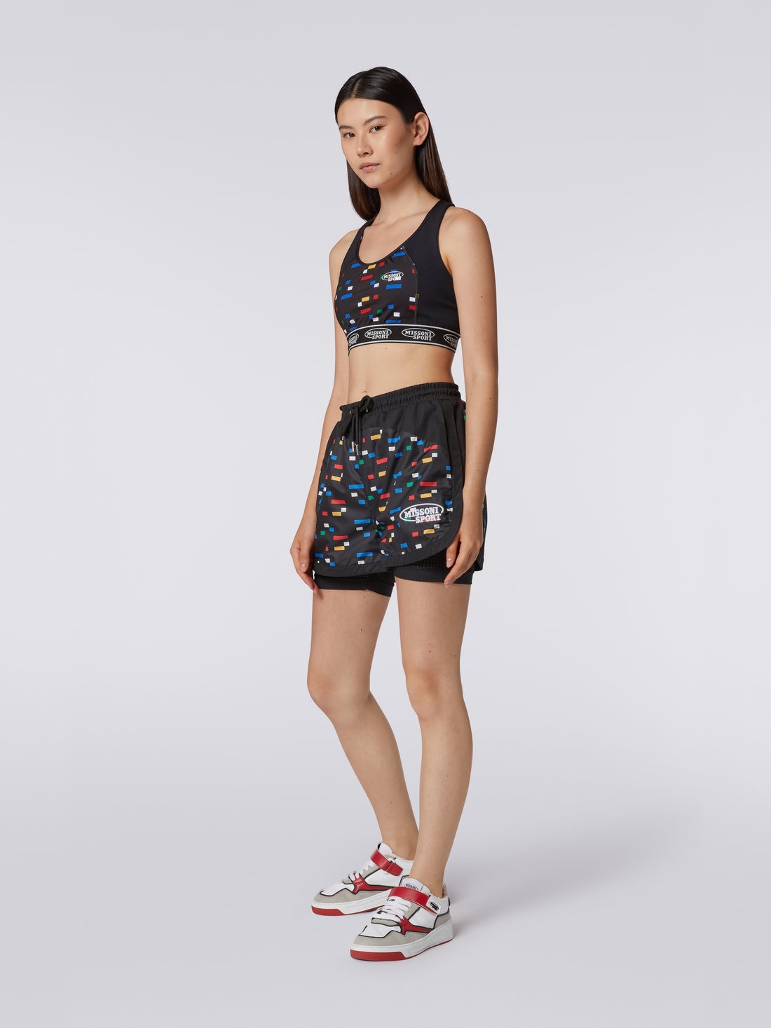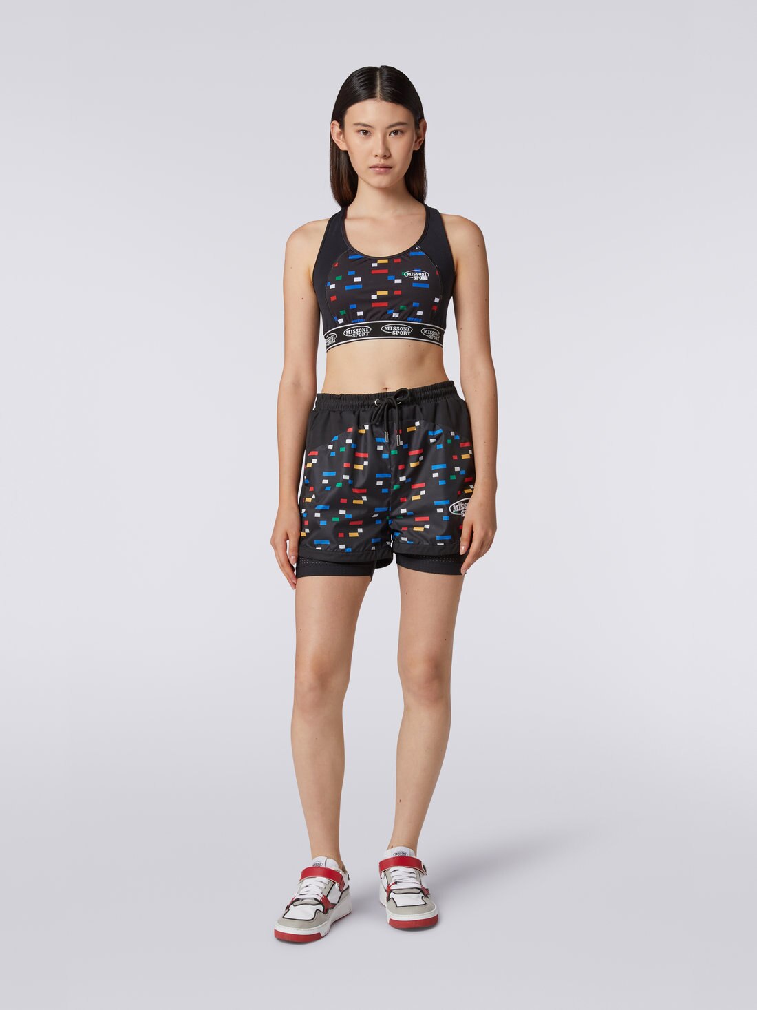 Ce short pour femme en tissu technique ne cache pas son héritage indéniable. Doublé d’une paire de cycliste en maille, ce modèle présente un imprimé pixel aux couleurs du logo legacy, et est personnalisé par le lettrage Missoni Sport brodé.