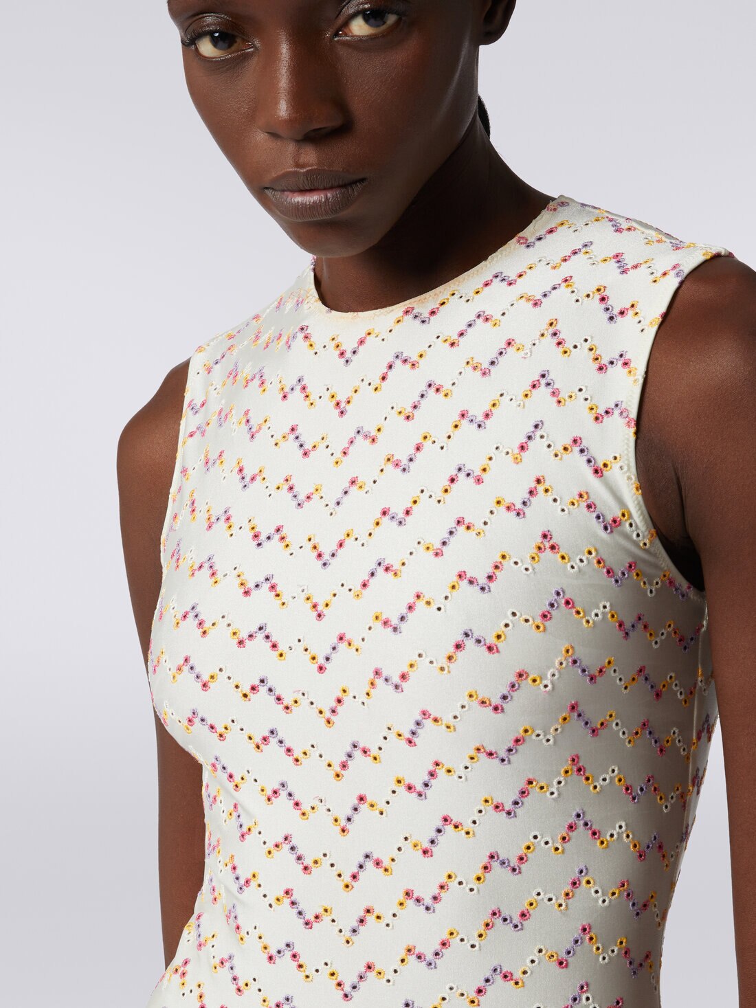 La maglia stretch, con lavorazione in pizzo sangallo, dà forma al body da donna con scollatura tonda. Un modello raffinato senza maniche, versatile e perfetto per regalare un tocco minimal chic ad ogni look.