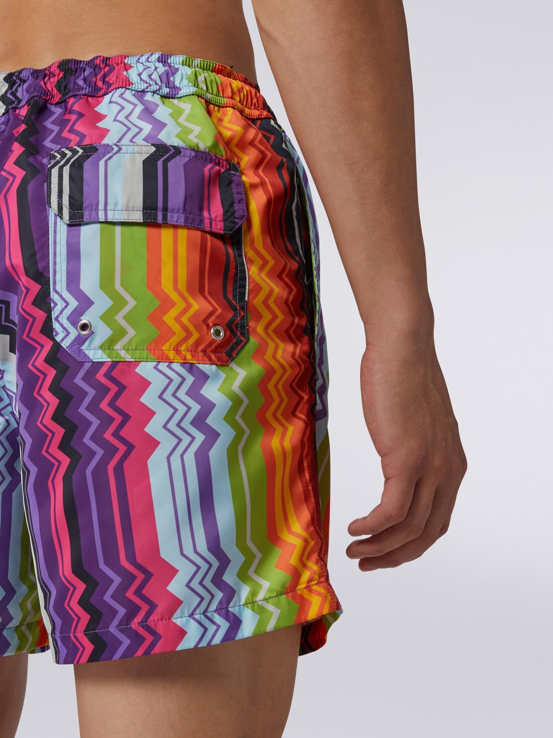 Racchiudere in pochi centimetri di stoffa la quintessenza del casual style è ciò che fanno i boxer mare da uomo. Realizzato in misto nylon, e arricchiti dalla stampa a zig zag verticale multicolore, questo costume interpreta alla perfezione la moda mare in versione Missoni.