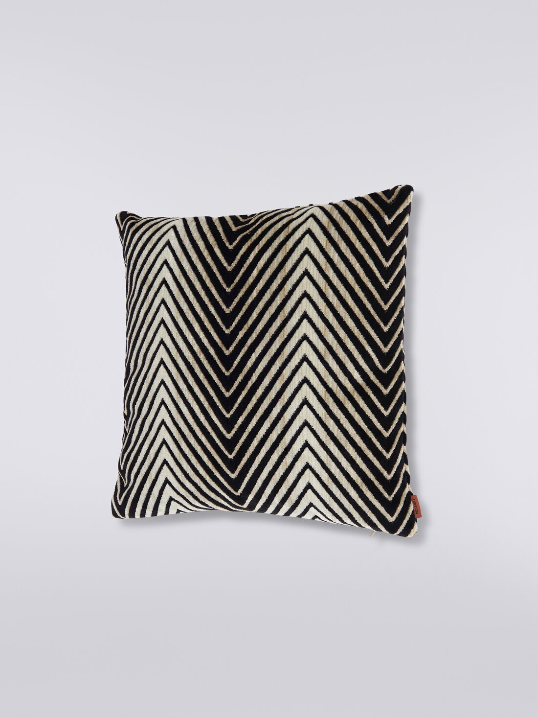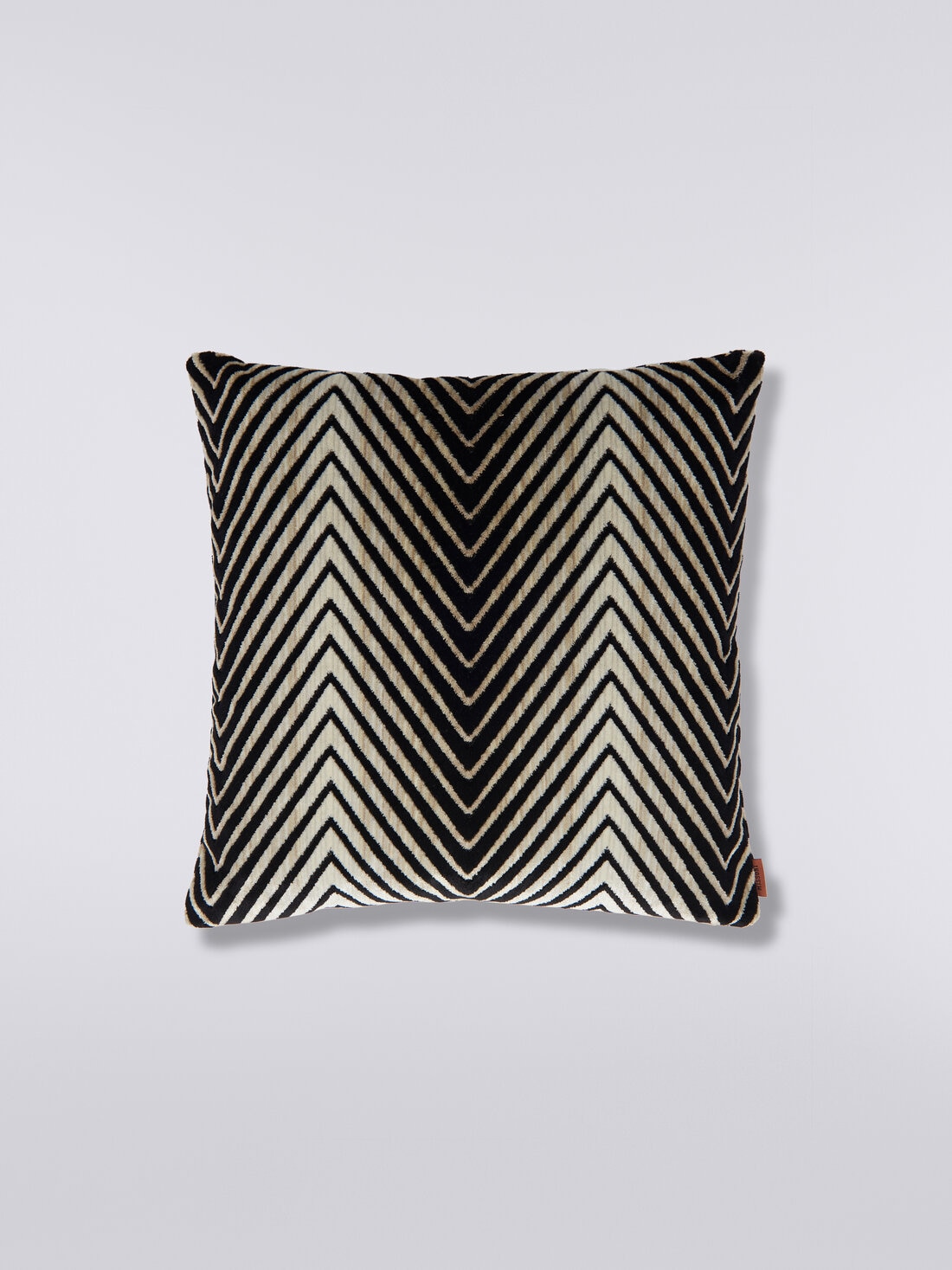 Un enigmatico susseguirsi di zig zag quasi selvaggi, con un tocco vellutato ed esotico, caratterizza il cuscino 40x40 cm in misto viscosa. Completo di piping tubolare e un'elegante etichetta logo, questo accessorio è perfetto per aggiungere un tocco di raffinato cosmopolitismo a qualsiasi ambiente, aggiungendo calore e stile con la sua presenza affascinante.