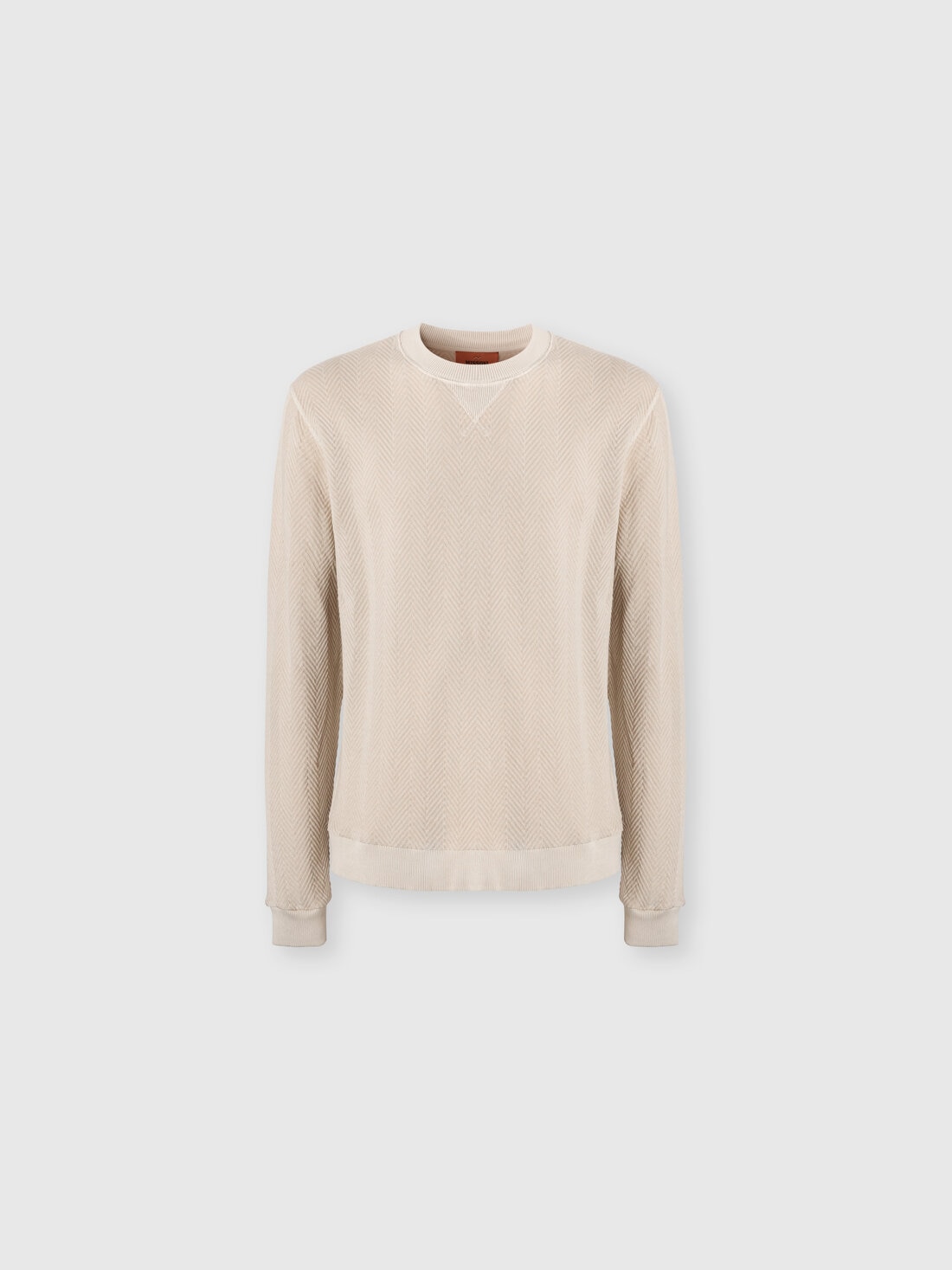 Felpa girocollo in cotone e viscosa con zig zag tono su tono