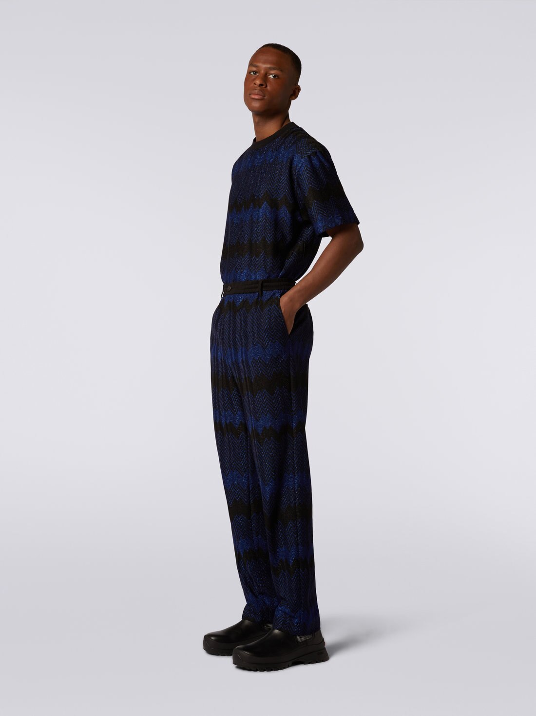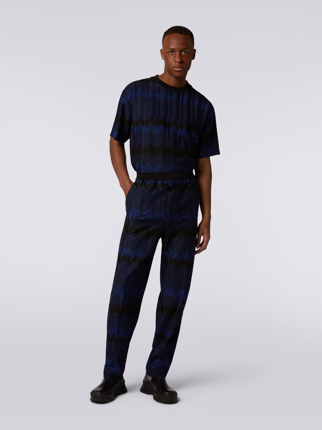 Pantaloni in viscosa zig zag con lurex