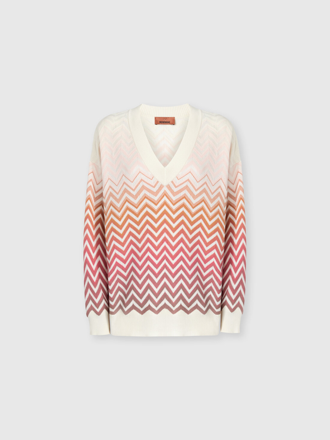 Pullover con scollatura a V in cotone e viscosa chevron dégradé