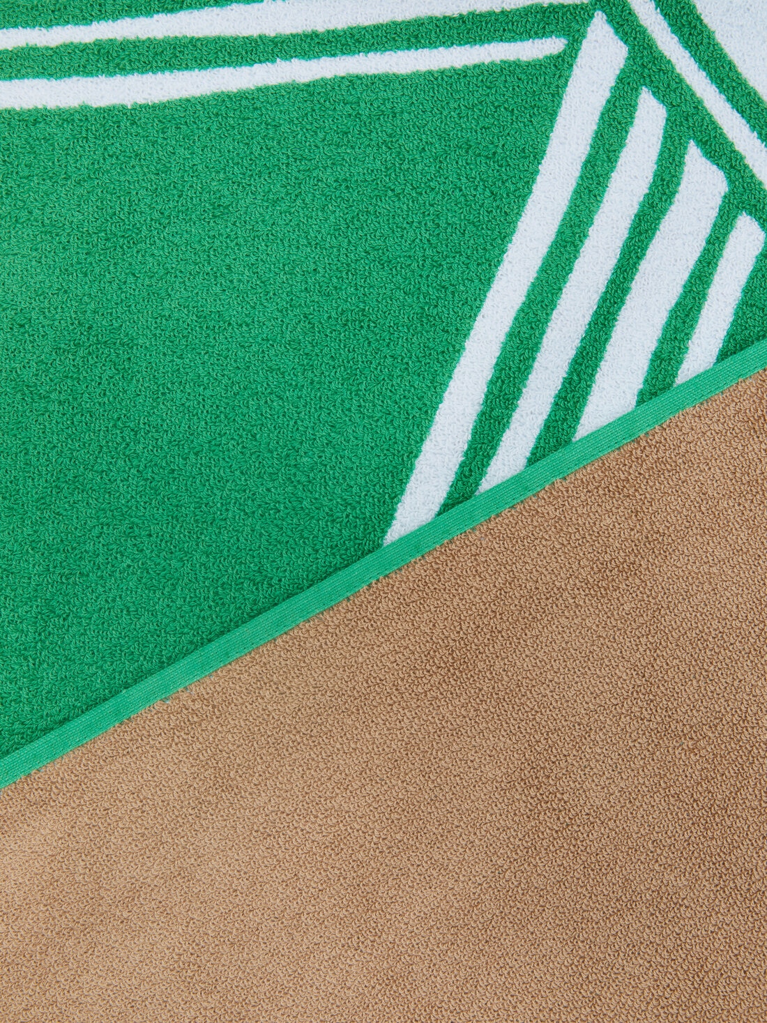 Il telo mare Nastri racchiude l'eleganza e l'artigianalità che da sempre contraddistingue MissoniHome. Con il distintivo motivo Nastri, il telo 180x100 cm offre non solo funzionalità ma anche un'estetica raffinata. Realizzato in morbida spugna di cotone velour e impreziosito dalla patch logo, si presenta come un accessorio di lusso indispensabile per i momenti di relax in riva al mare o in piscina.