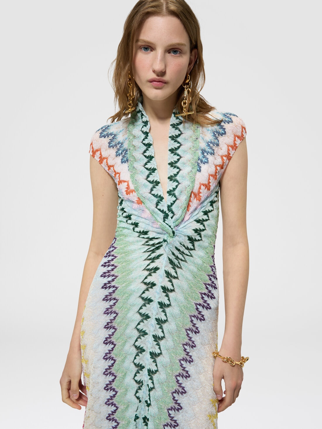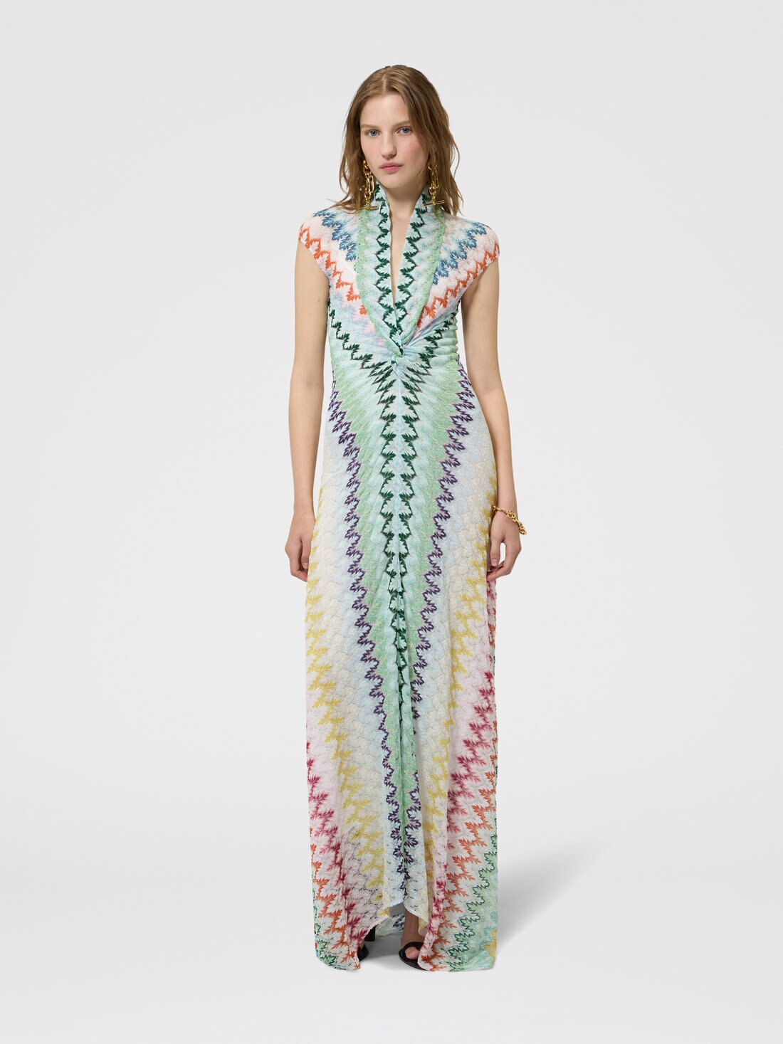 Abito lungo in pizzo zig zag