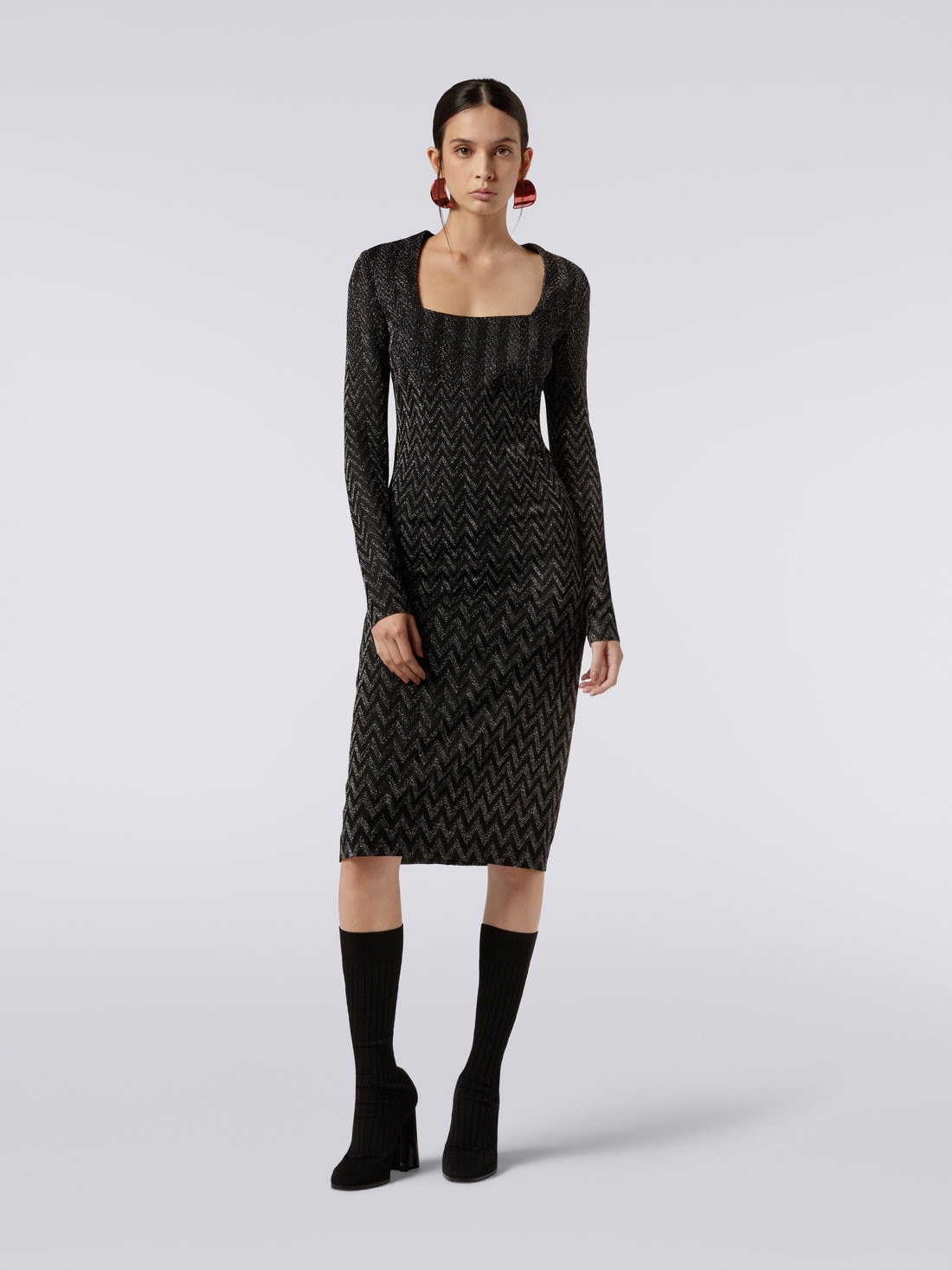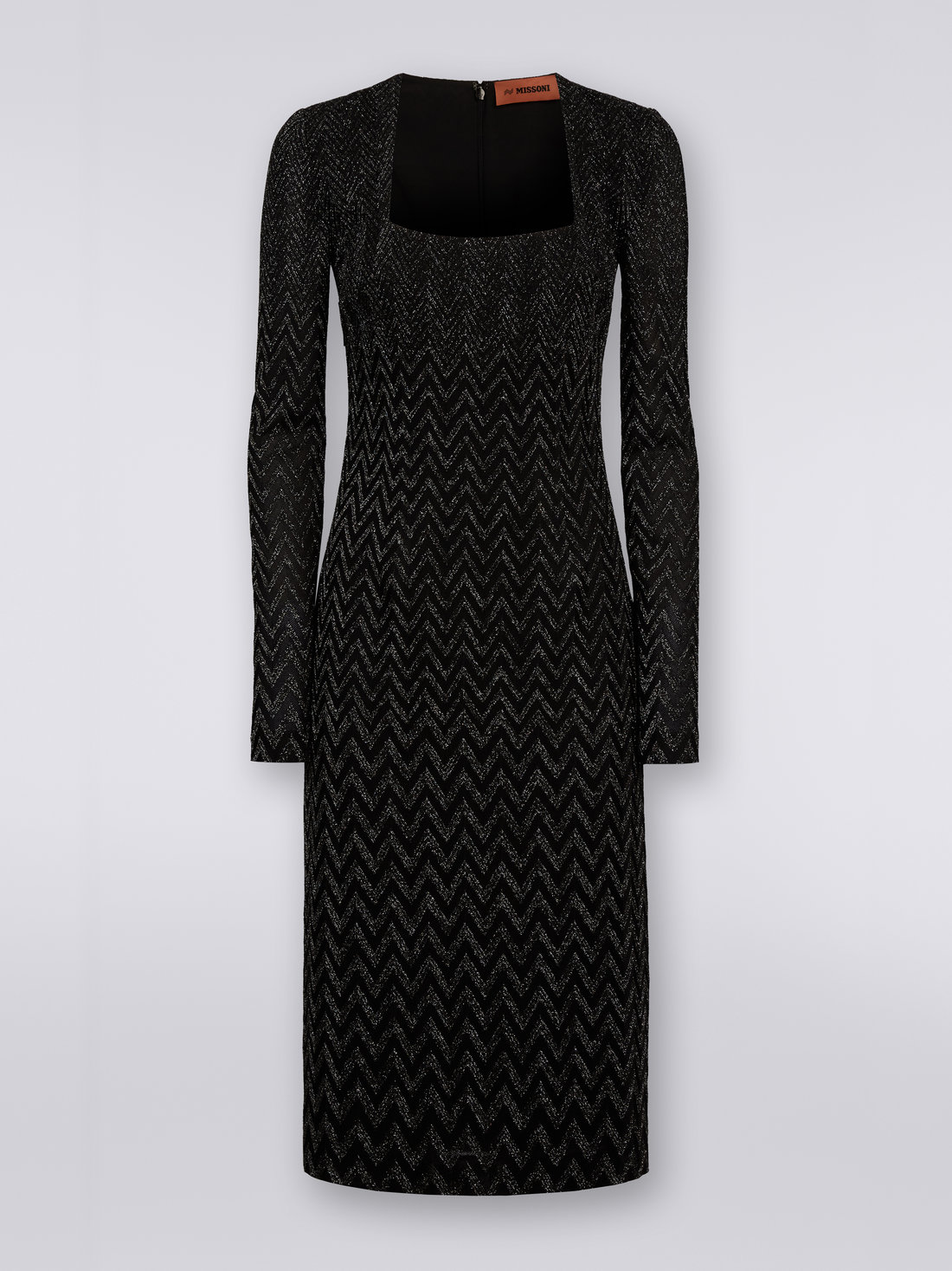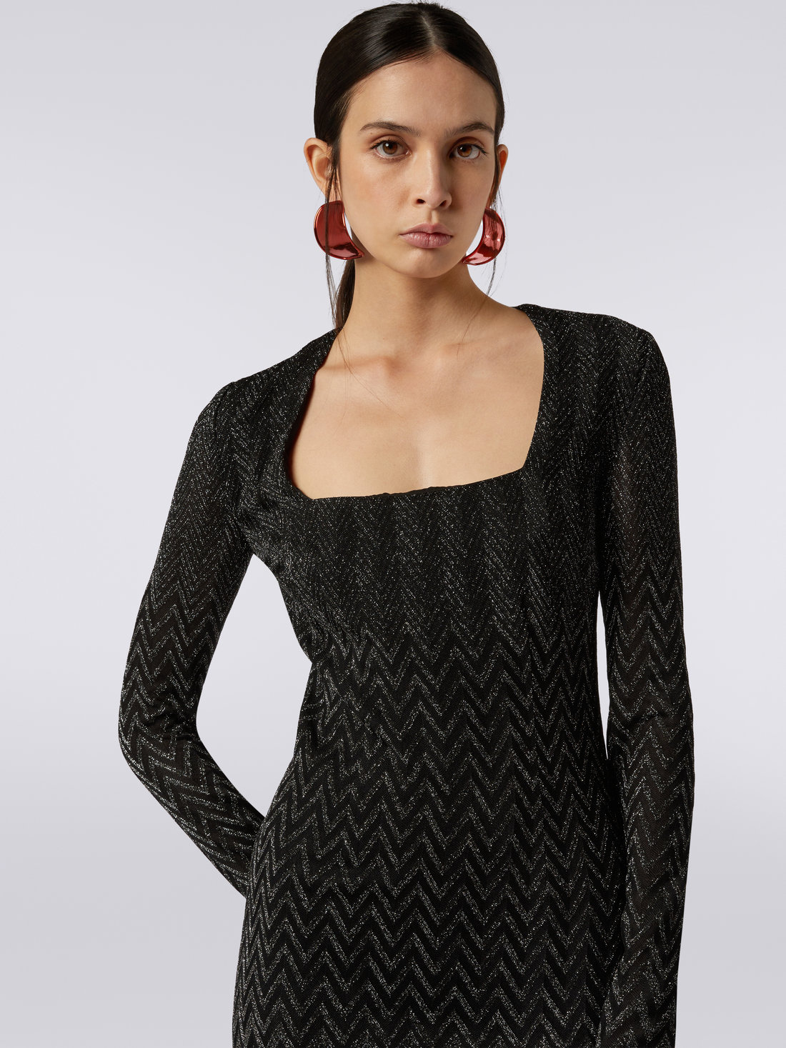 Abito midi con scollatura squadrata in viscosa chevron con lurex