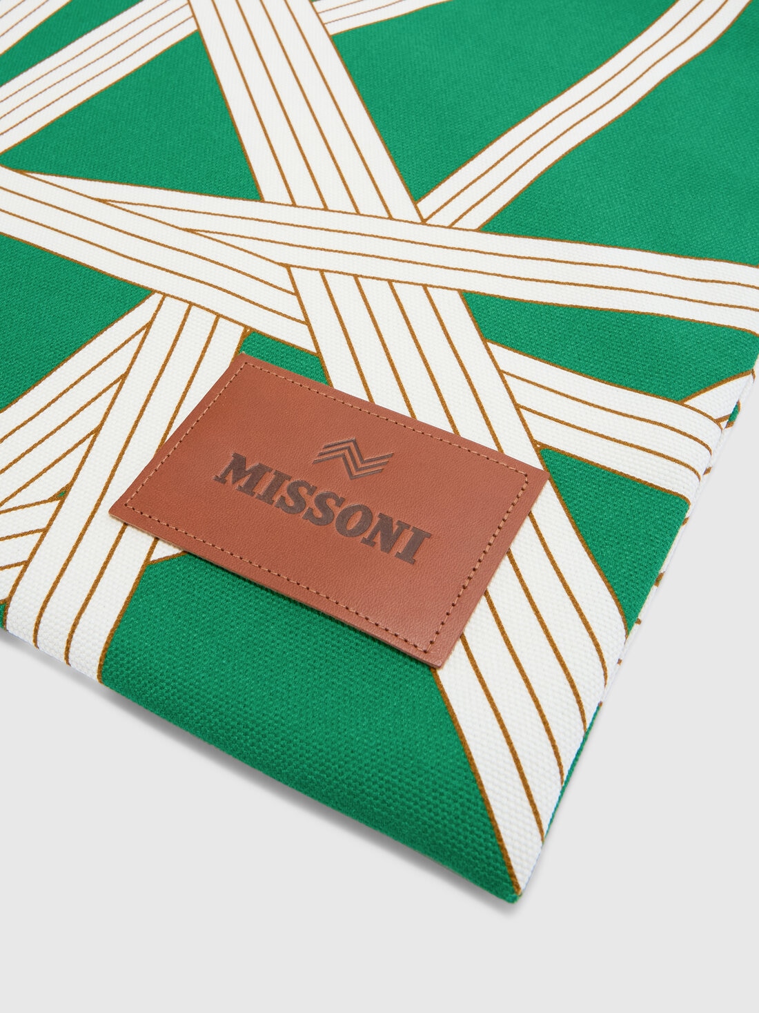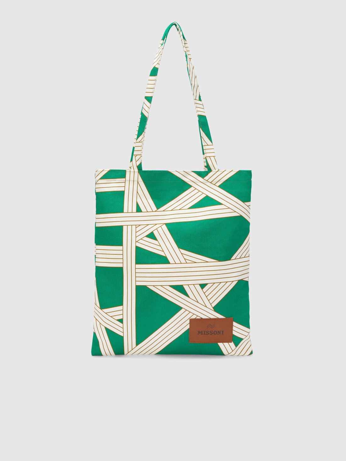 La borsa da casa Nastri di Missoni, in 100% cotone e con misure 35x39 cm, declina perfettamente il carattere distintivo del brand. La sua stampa, composta da nastri intrecciati, crea un movimento geometrico che dona dinamicità e originalità al design. Questo accessorio pratico e versatile è ideale per riporre con ordine gli oggetti più svariati, aggiungendo un tocco di stile sofisticato e contemporaneo.
