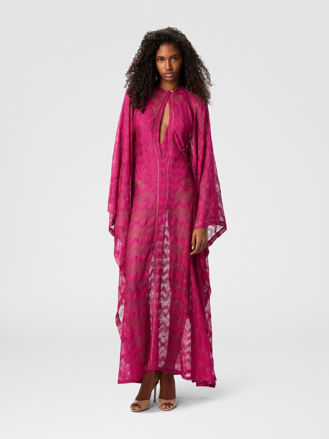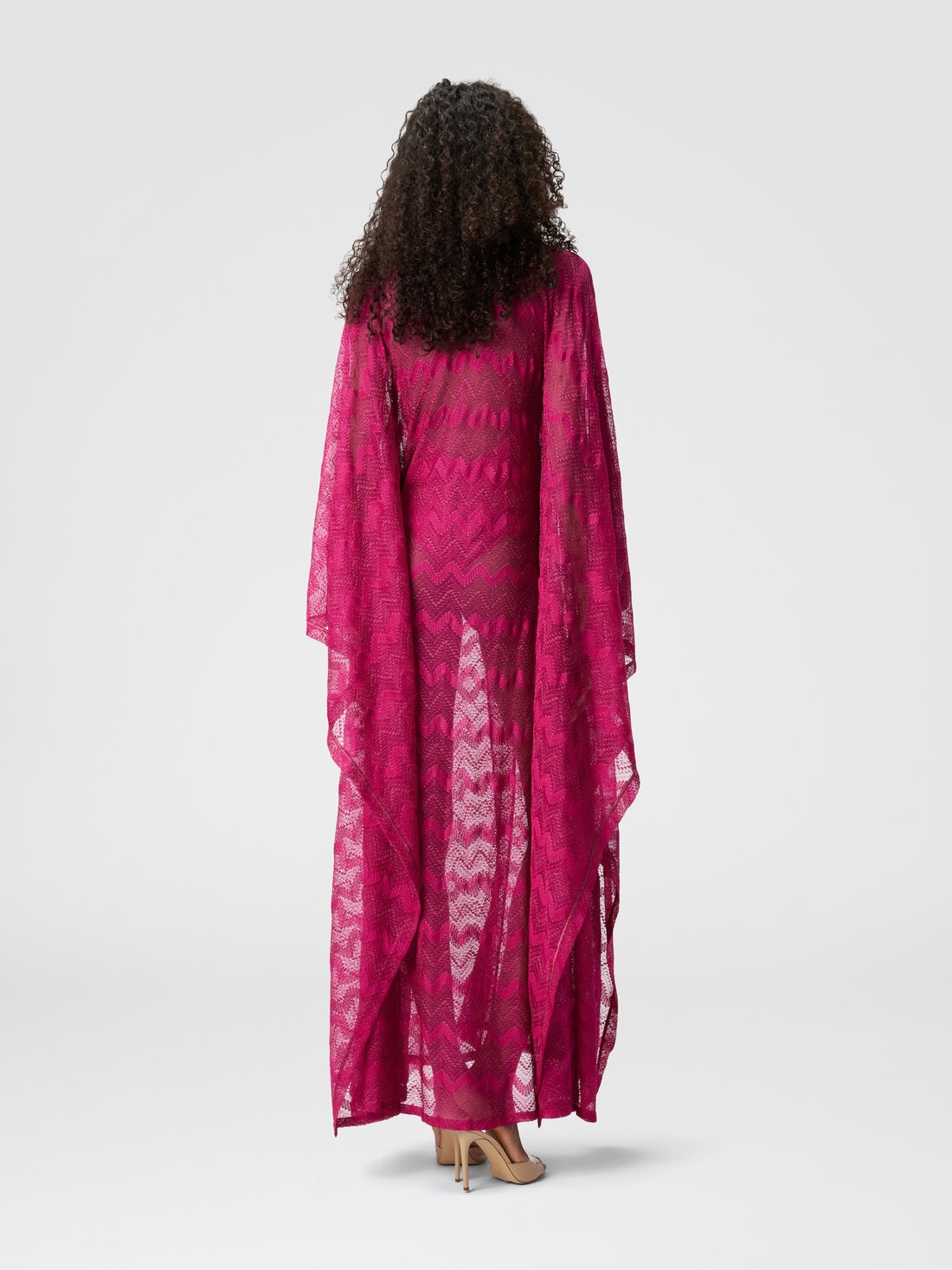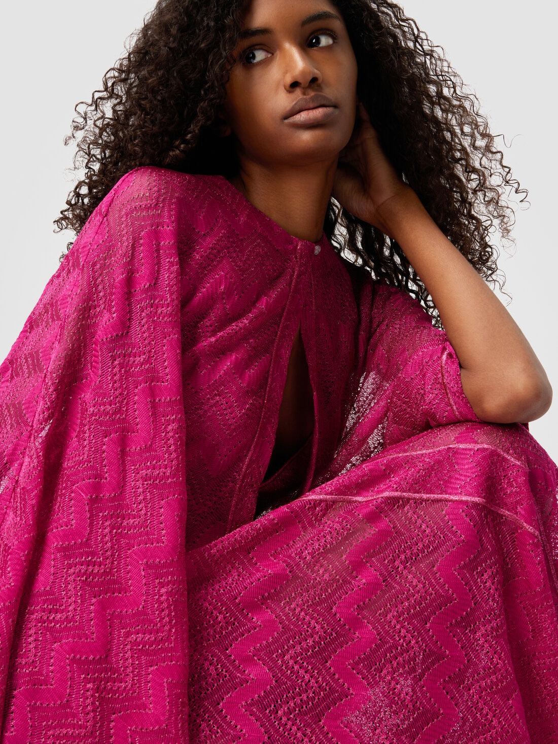 Il caftano copricostume lungo in viscosa lamé di Missoni cattura l’essenza di un’eleganza senza tempo con un tocco di sensualità moderna. Il raffinato motivo chevron, arricchito dai riflessi lamé, avvolge il corpo in una luminosità sofisticata, mentre il dettaglio cut-out aggiunge una nota di seduzione discreta. Le maniche lunghe svasate completano il design con un movimento fluido e leggero.