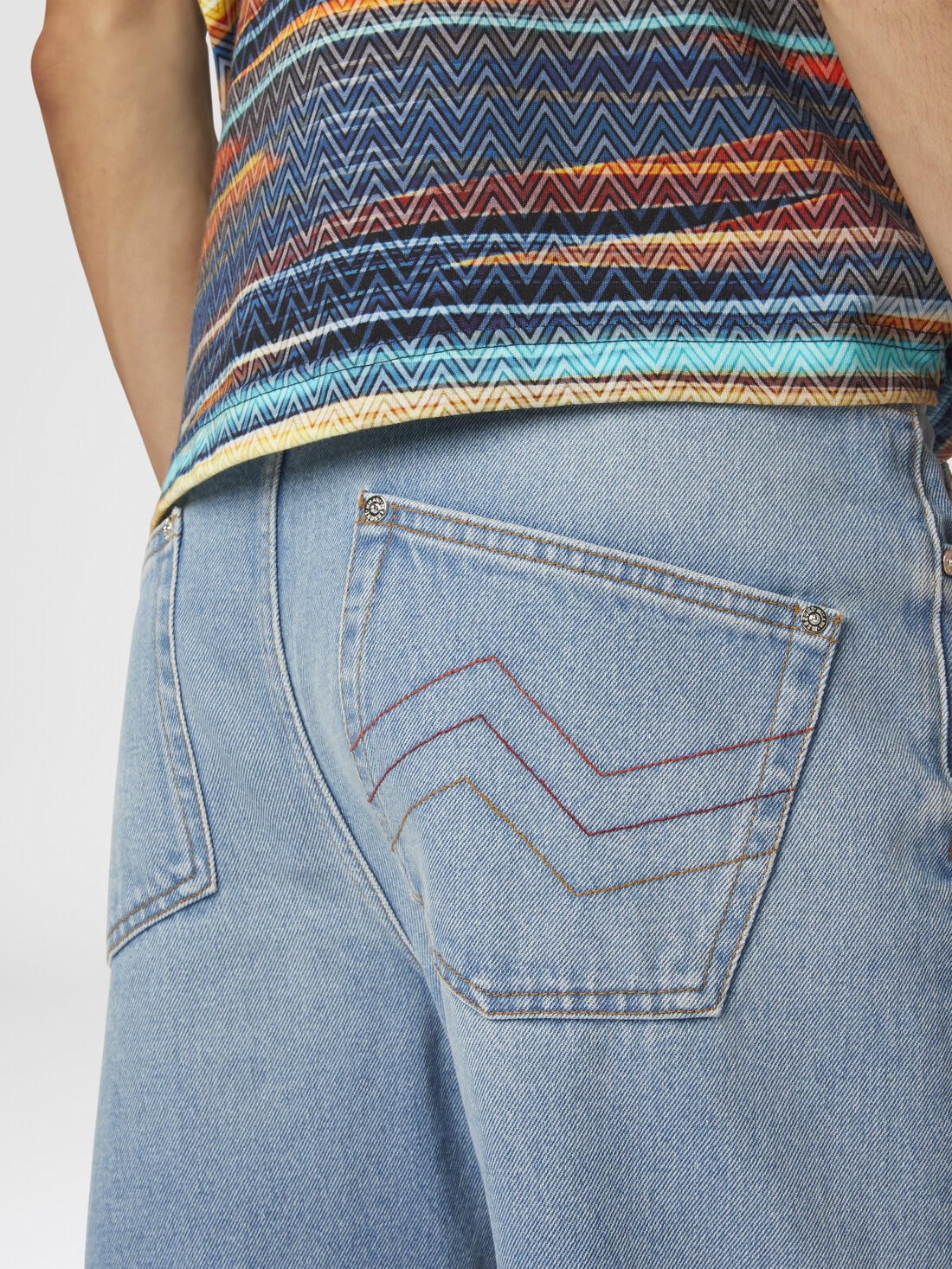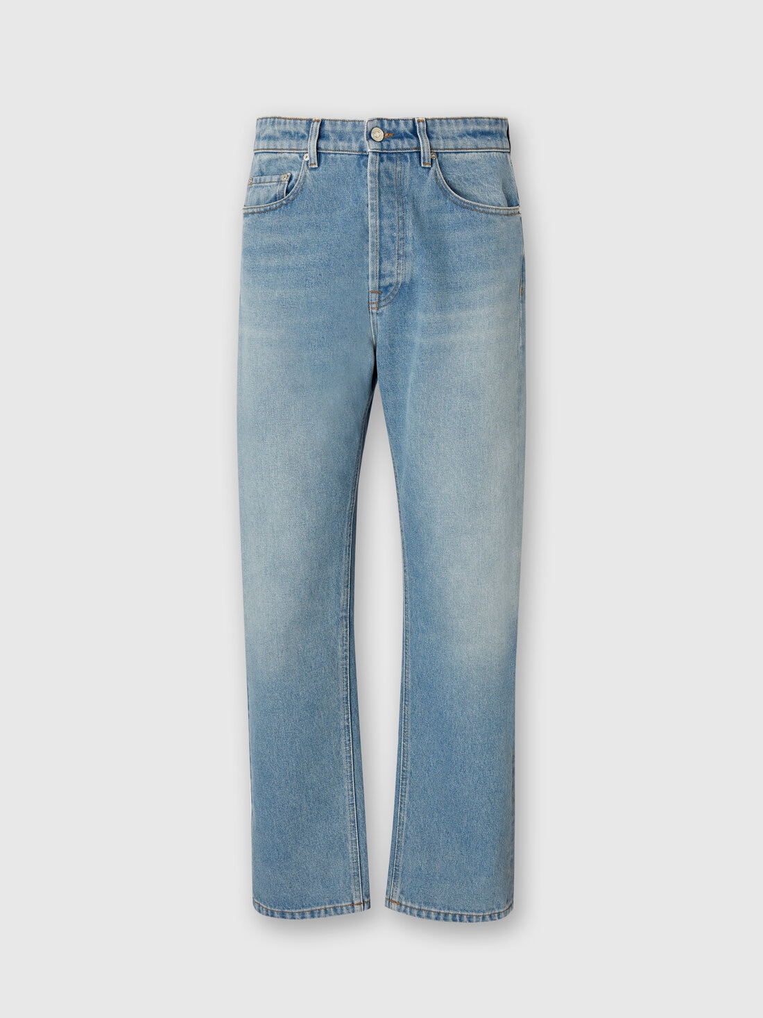 Classico e contemporaneo si fondono in questi pantaloni in denim a cinque tasche. Il ricamo zig zag impreziosisce la robusta struttura del denim, aggiungendo un tocco di modernità a un capo senza tempo. Dettagli iconici che svelano una maestria artigianale inconfondibile.