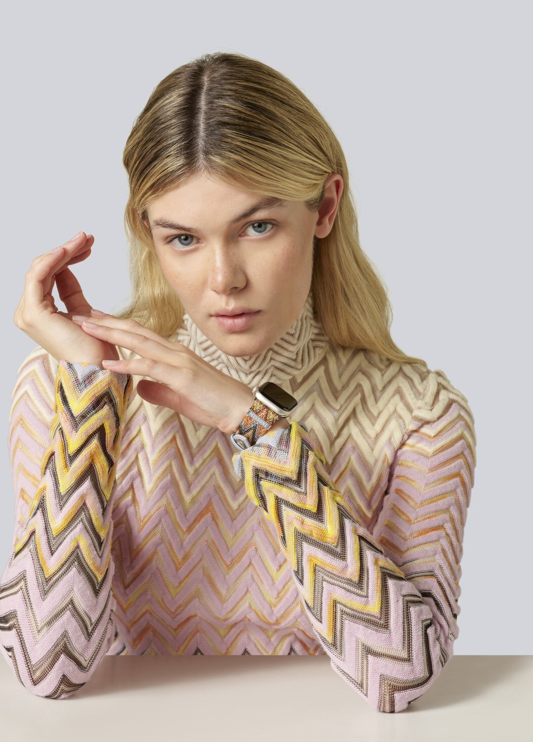 Realizzato in autentico tessuto Missoni, questo cinturino per Apple Watch©, unico nel suo genere, rende omaggio all'artigianalità e all'iconica estetica italiana. Il motivo a zig zag multicolore ed elegante e il logo Missoni, rendono l'orologio un accessorio inconfondibile e sofisticato. Il cinturino è compatibile con Apple Watch© fino alla Serie 8 ed è progettato per casse da 38 mm, 40 mm e 41 mm.