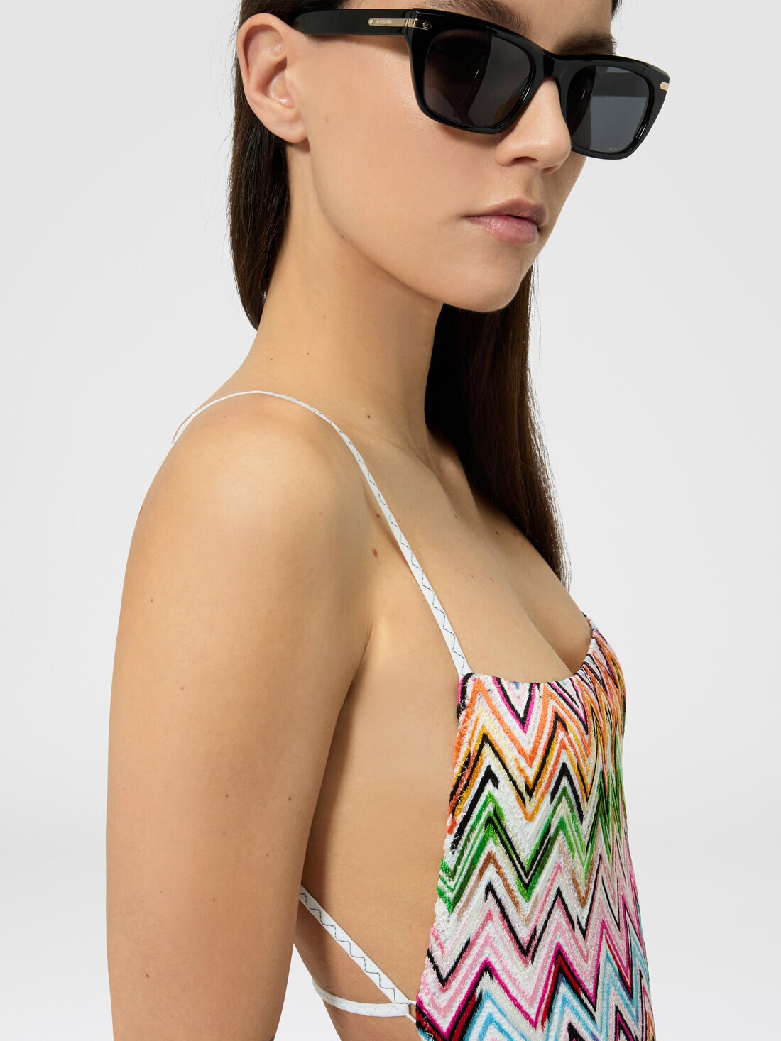 Costume intero in viscosa stretch motivo pizzo con zig zag