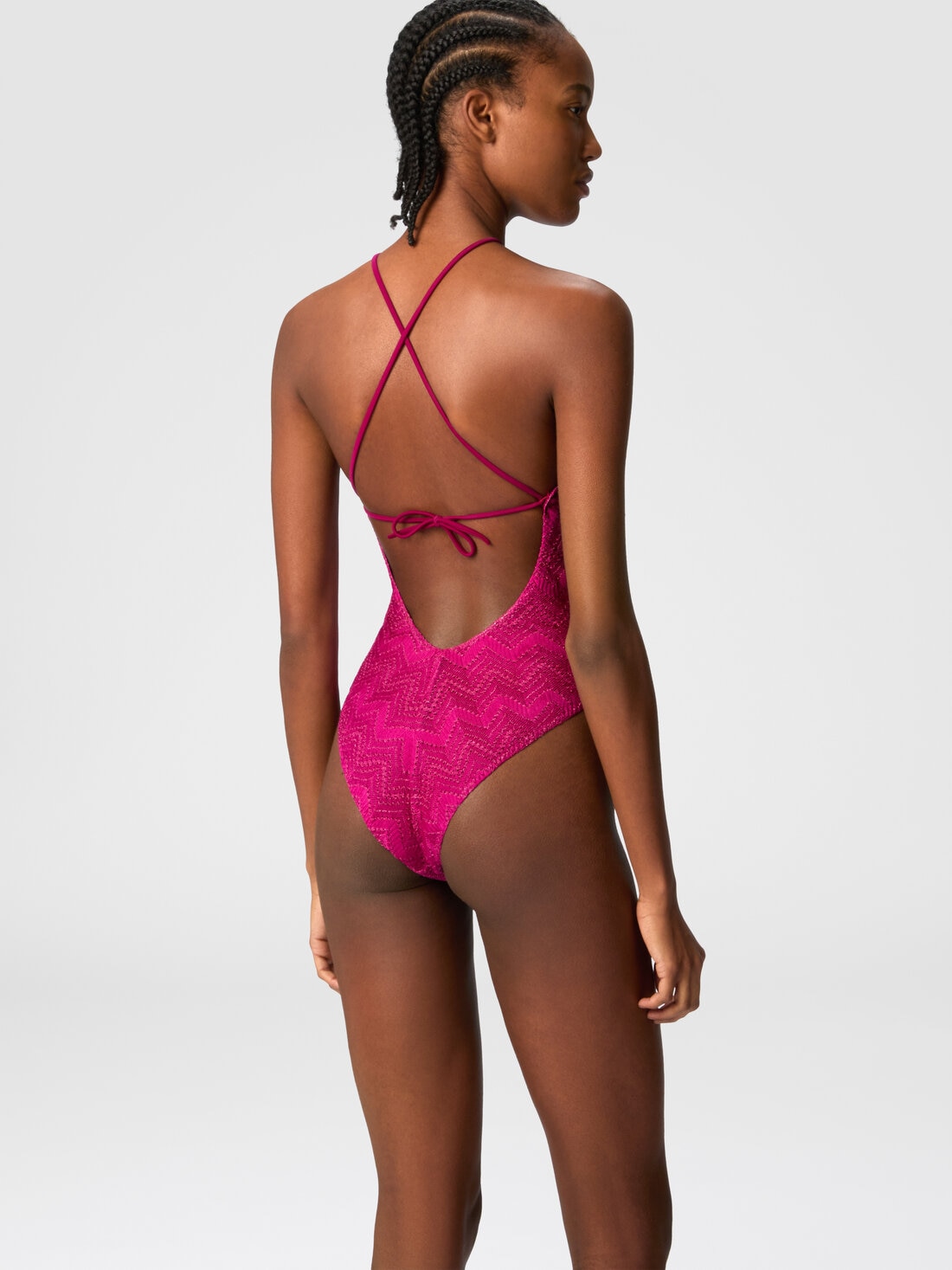 Costume intero in viscosa zig zag lamé con scollo all'americana