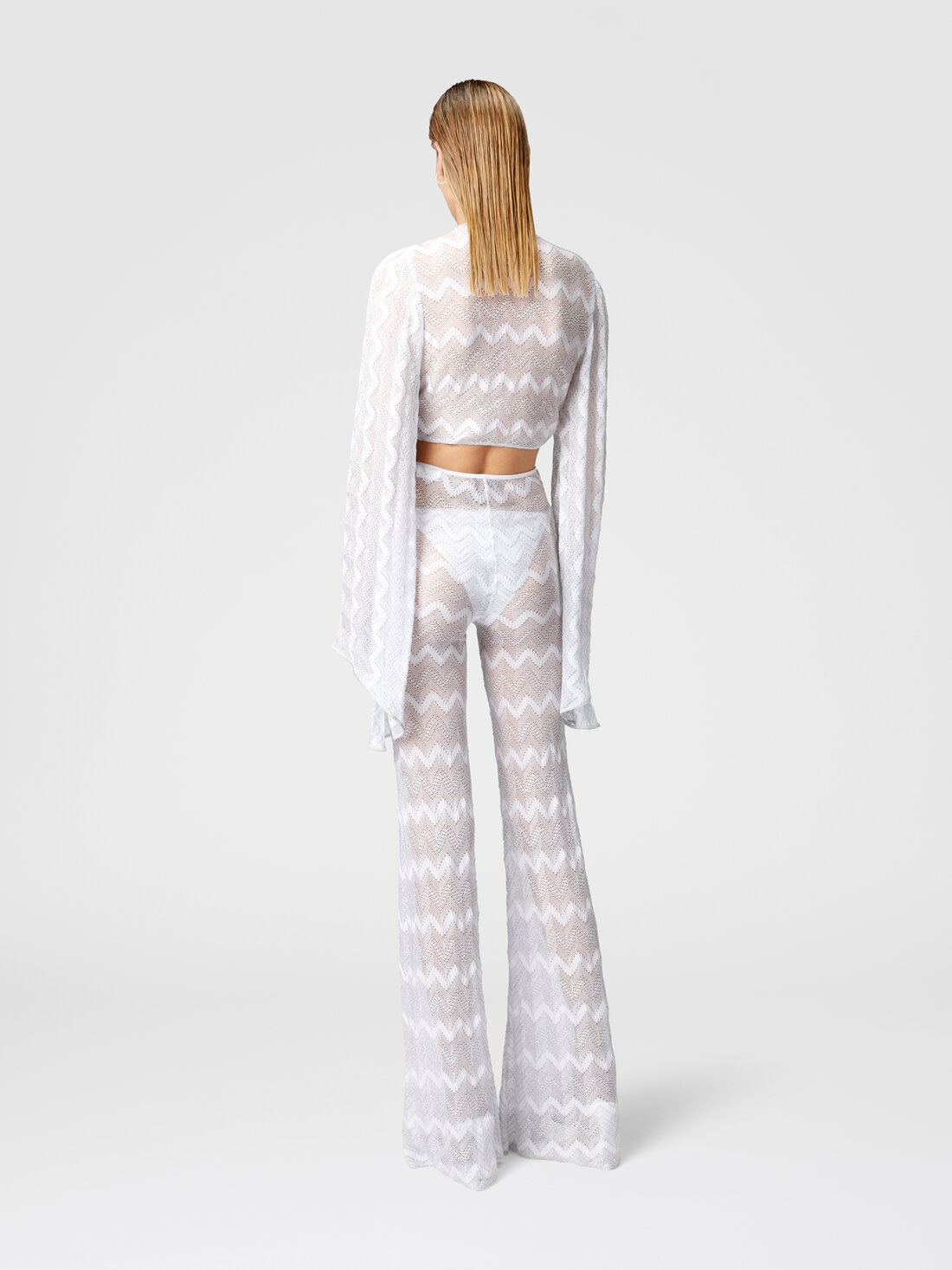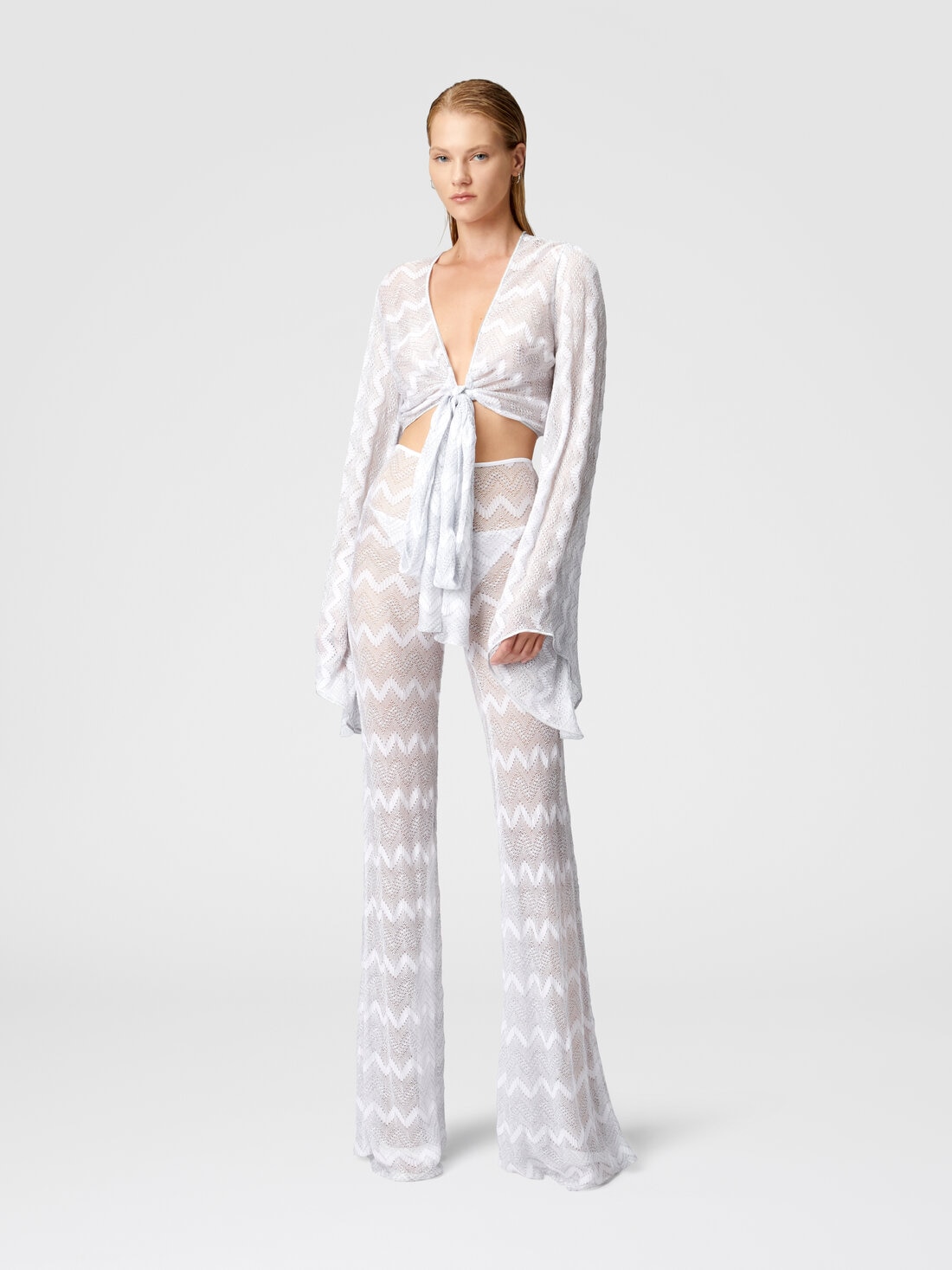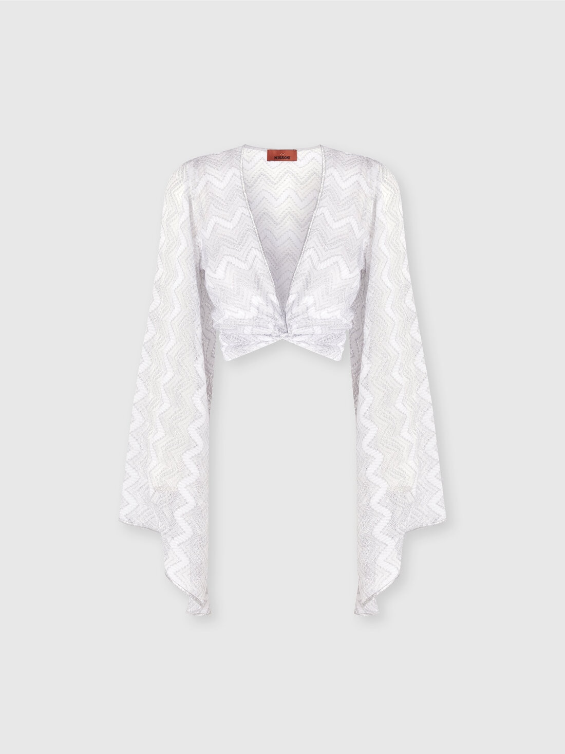 Crop top con maniche ampie e nodo frontale in viscosa zig zag lamé