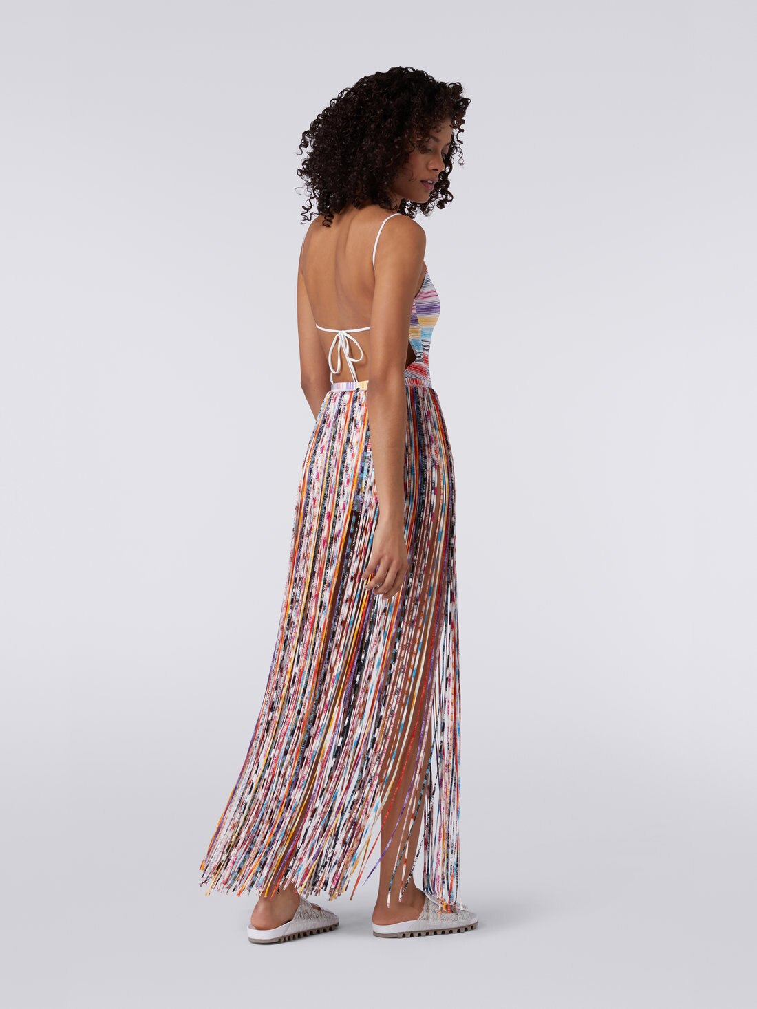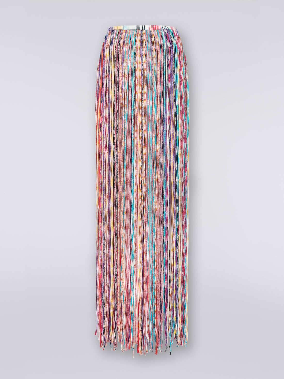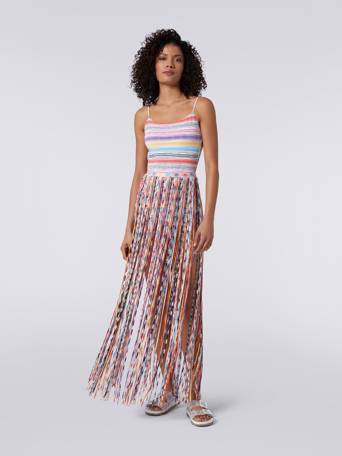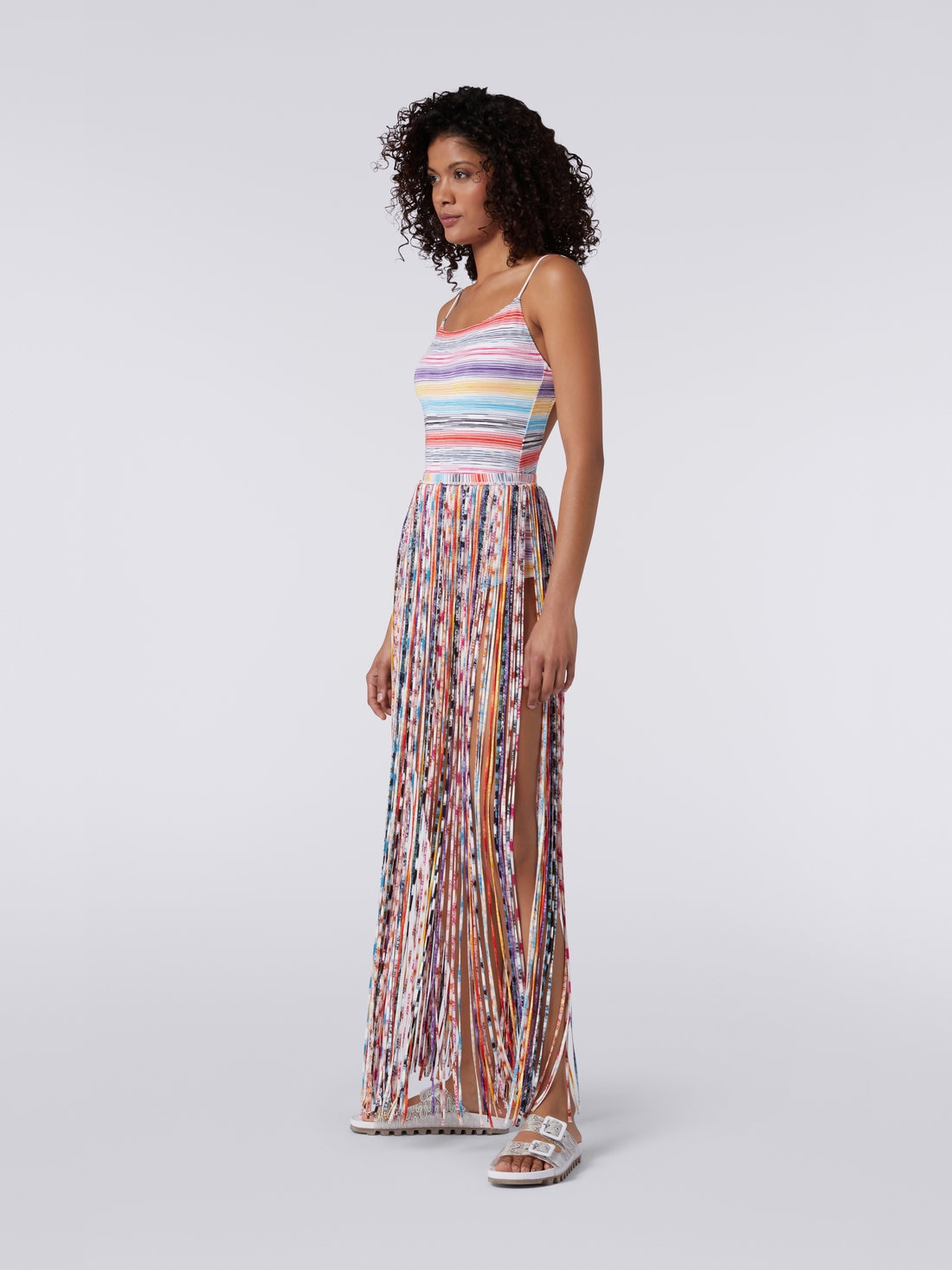 Elevare il copricostume quasi a una forma d'arte è l'obiettivo realizzato dalla gonna lunga da donna. Un modello che evoca il nome di Missoni a gran voce, grazie al particolare design fatto da frange tubolari di cotone fiammato multicolore.