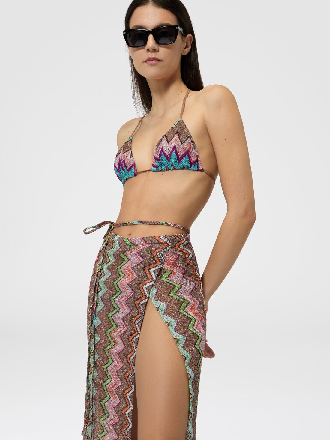 Gonna lunga a pareo in viscosa lamé con macro zig zag