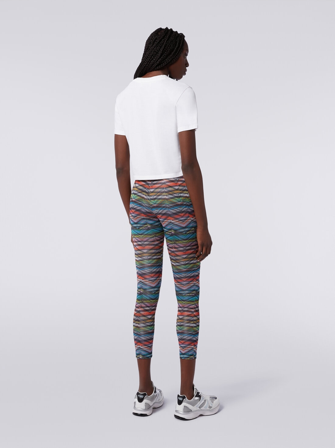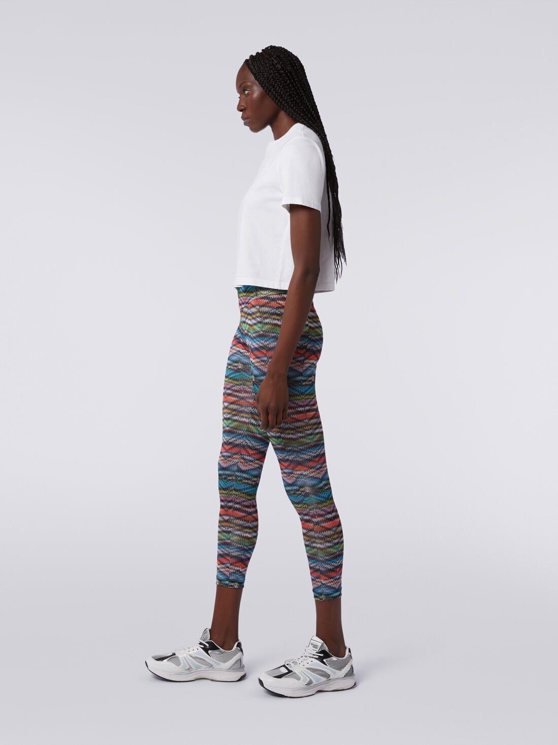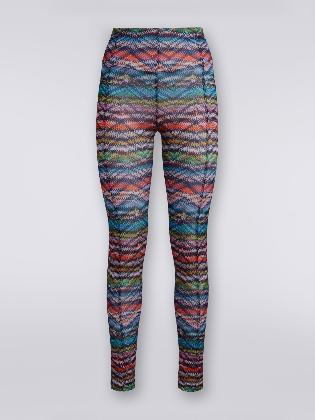 Confortevoli come si richiede a un capo tecnico, ma al contempo stilosi come consueto per Missoni, i leggings da donna in tessuto stretch sono animati dalla stampa iconica del brand e arricchiti dalle impunture a contrasto.