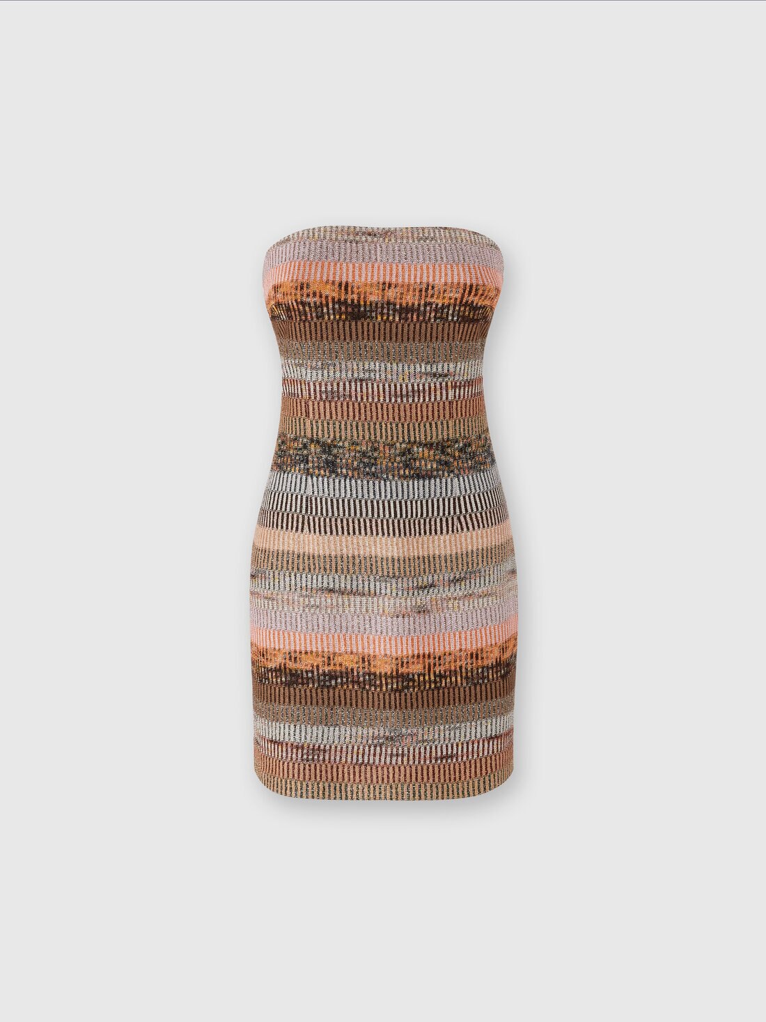 Racchiude tutto il DNA di Missoni il mini-abito a bustier. Caratterizzato dalla sofisticata lavorazione raschel con motivo lamé, il capo è realizzato in misto viscosa.