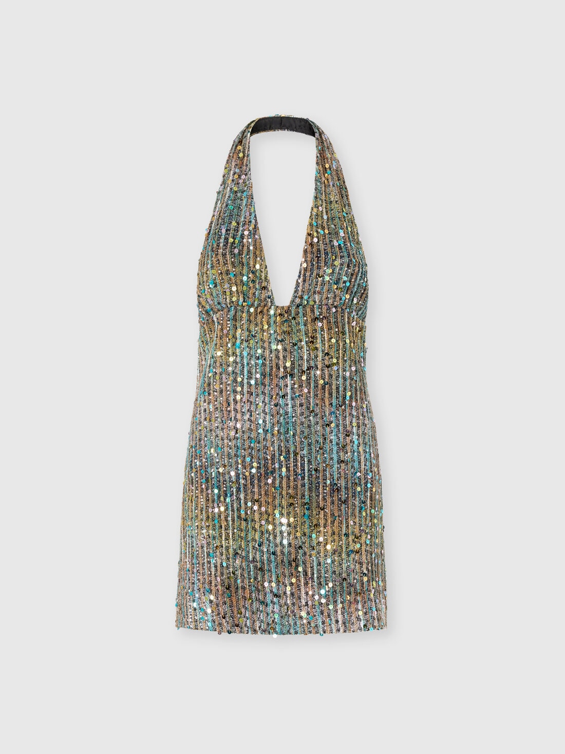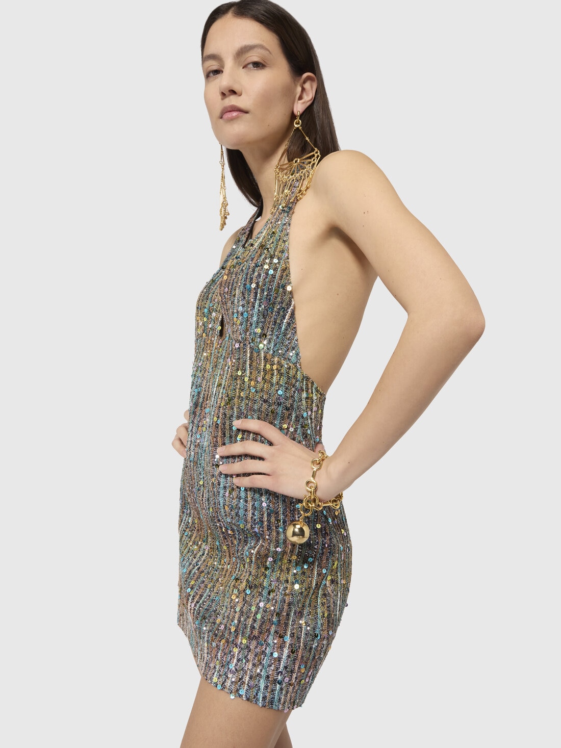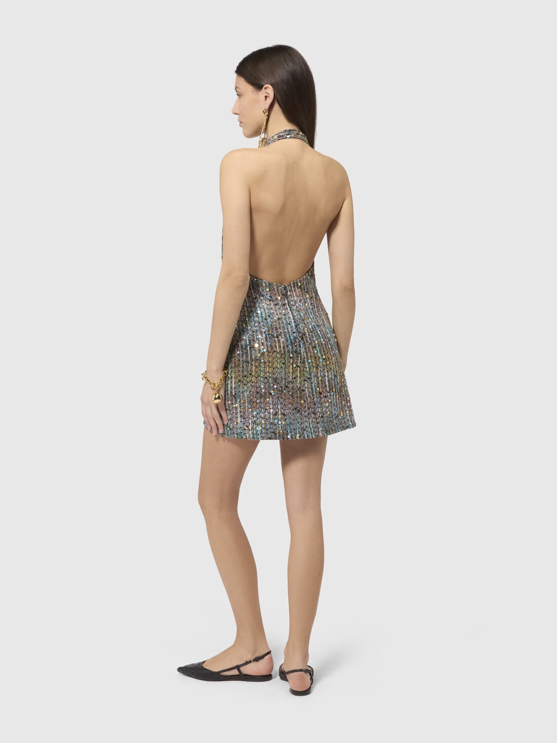 Mini-abito con schiena scoperta e applicazione di paillettes