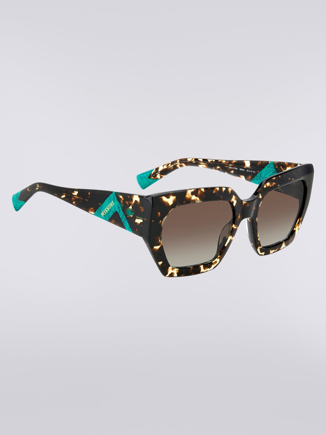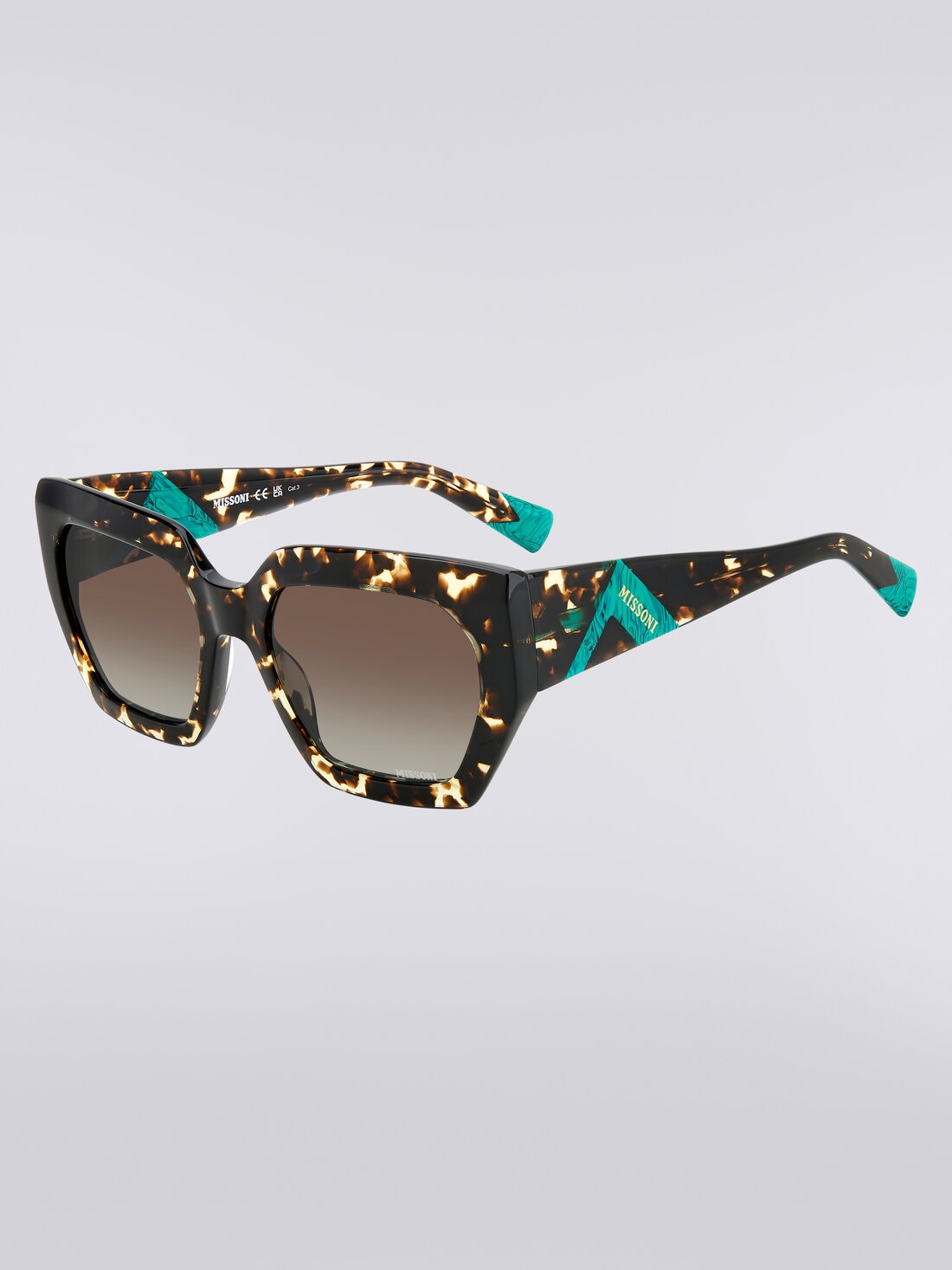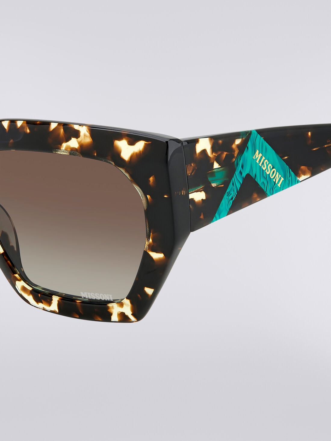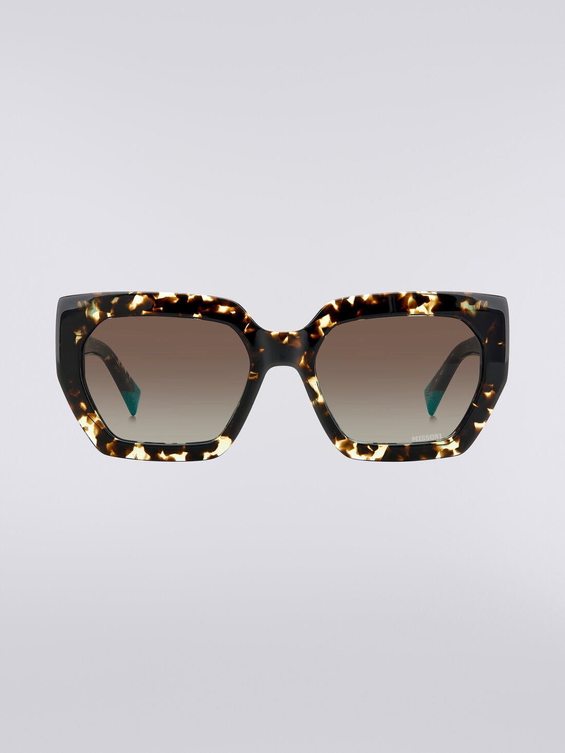 Eleganti e audaci, gli occhiali da sole oversize in acetato della collezione eyewear Missoni incarnano uno stile distintivo e sofisticato. La loro silhouette imponente è arricchita con un vivace elemento triangolare acetato con logo Missoni inciso al laser, incastonato sulle aste oversize, e dall’iconico terminale a zig zag tono su tono. Ogni superficie della montatura è stata lavorata appositamente per rendere il modello più leggero e il più confortevole possibile ed è completata dal logo Missoni inciso al laser sulla lente sinistra.